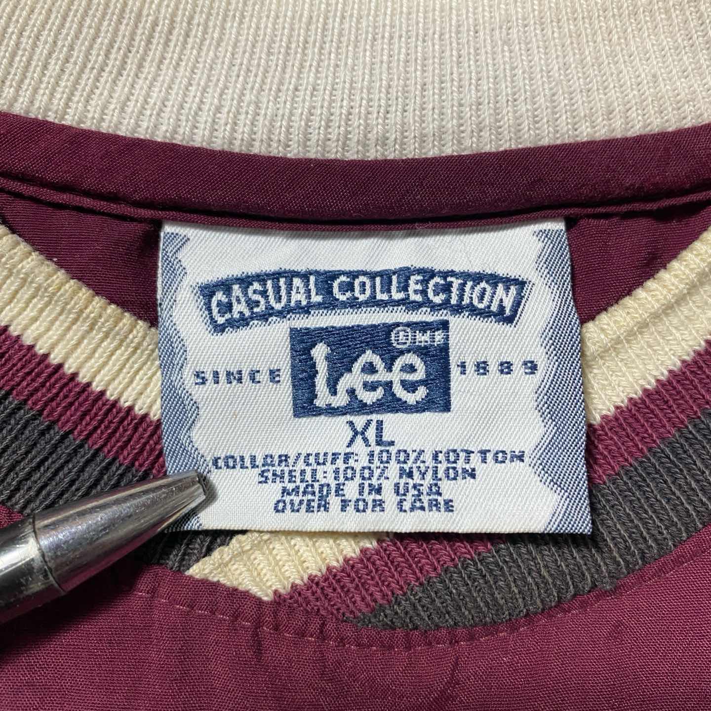 【USA製・XL】90's Lee 刺繍ロゴ ラインリブ ナイロンプルオーバー