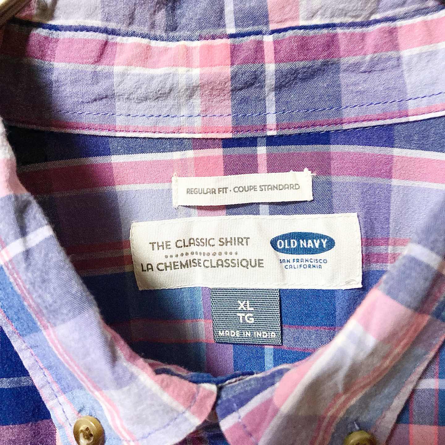 OLD NAVY Tartan Button-Down Shirt XL, Blue/Pink