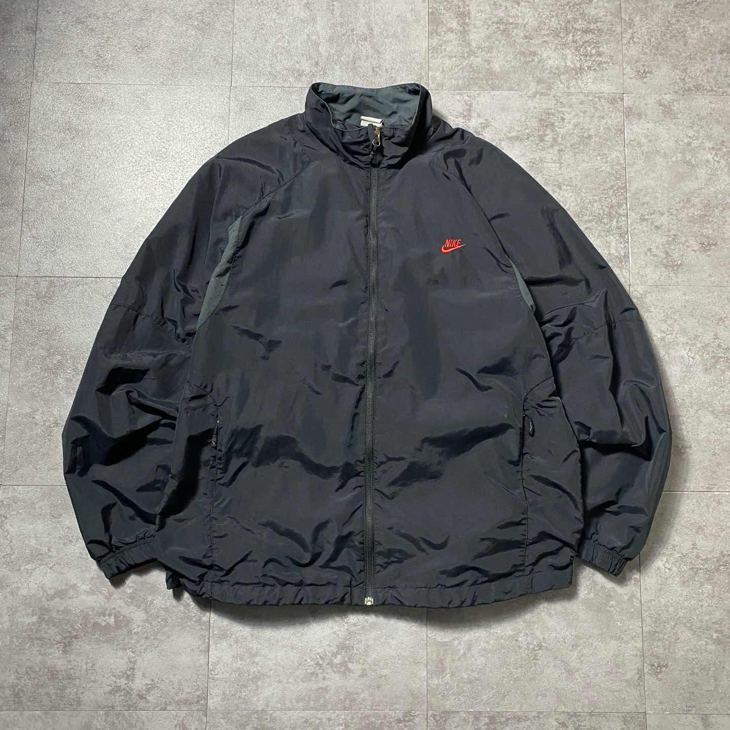 00's NIKE ナイキ スウォッシュ 刺繍ワンポイント ブラック ナイロンジャケット