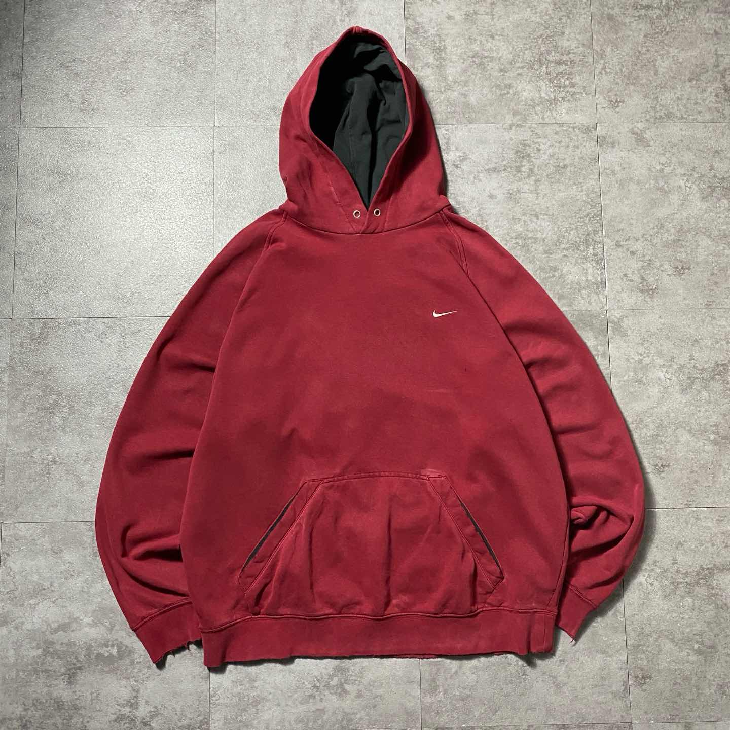 00's NIKE ナイキ スウォッシュ 刺繍ワンポイント ダメージ スウェット パーカー