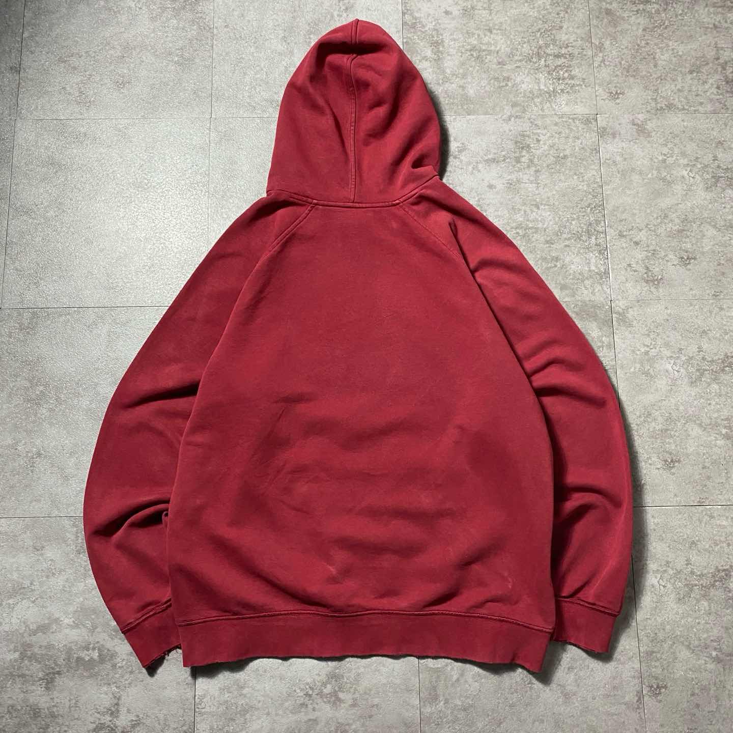 ○Size○ 表記→L ・着丈66 ・身幅67 ・袖丈77(ラグランスリーブ) (cm) ○Color○ ・ワインレッド ○Material○ ・80%コットン 20%ポリエステル ○Condition○ ・フロントロゴ付近にほつれ、薄汚れあり ・両袖先、裾先、ポケットの縁それぞれに細かなほつれ、ダメージ等あり ○Caution○ 当店で取り扱っている商材は全て『古着』となっております。 そのため、多少の状態難(ほつれ、傷、汚れ、リブの伸び、使用感、擦れ、色あせ、etc)がある場合がございます。 新品同様の完璧なお品物をお求めの方は当店でのお買い物を控えて頂きますよう宜しくお願いします。 また、購入された商品に関しましては、購入日時から起算して『72時間以内に』発送手続きの方を取らせて頂きます。 お急ぎの場合は購入前に当店オンラインストアの方にお問い合わせ頂きますよう宜しくお願いします。 25/1616