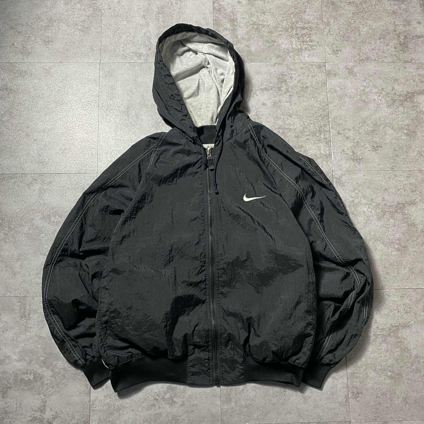90's NIKE ナイキ スウォッシュ 刺繍ワンポイント フード ナイロンジャケット