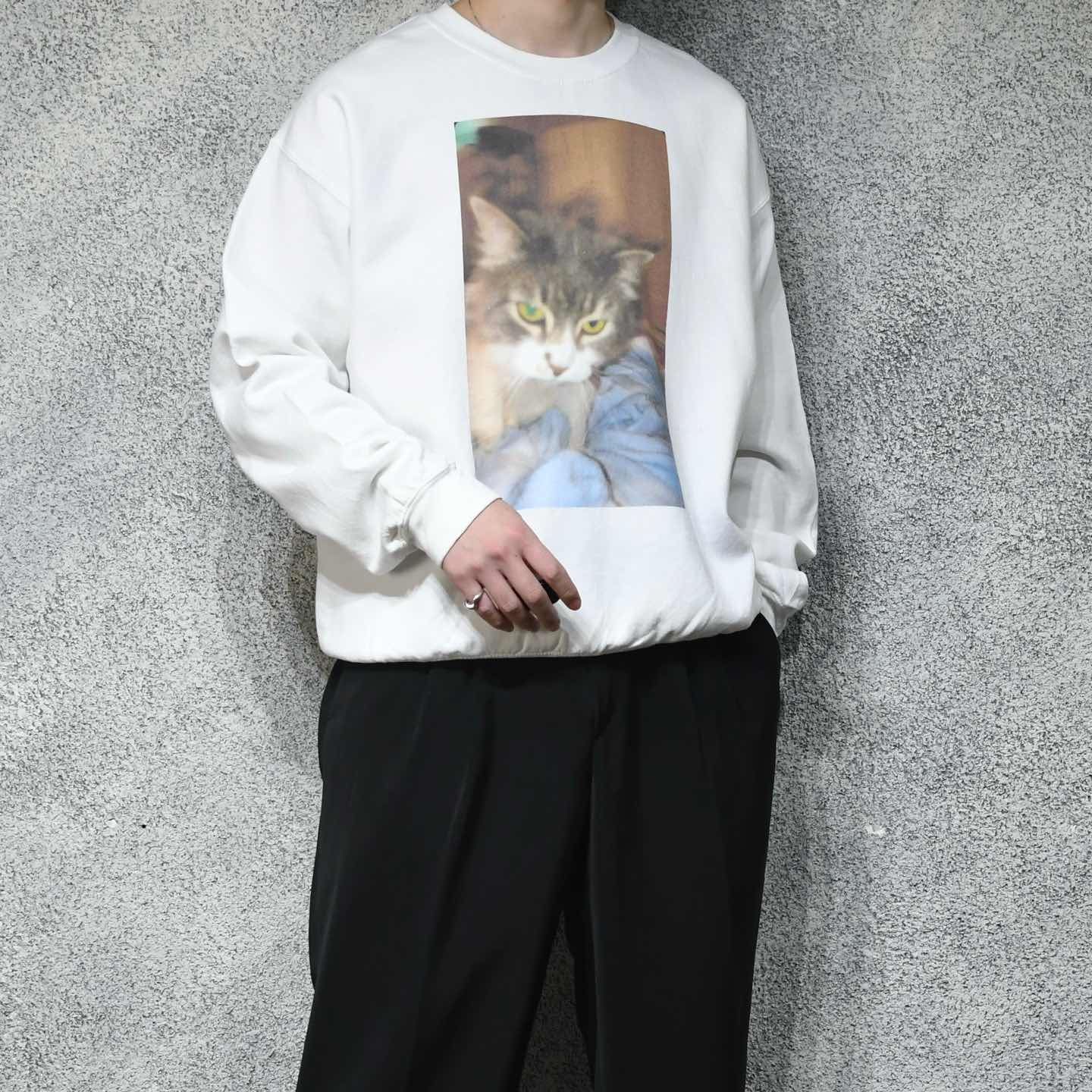 古着 ネコ 猫 プリントスウェット スウェット トレーナー ホワイト 白