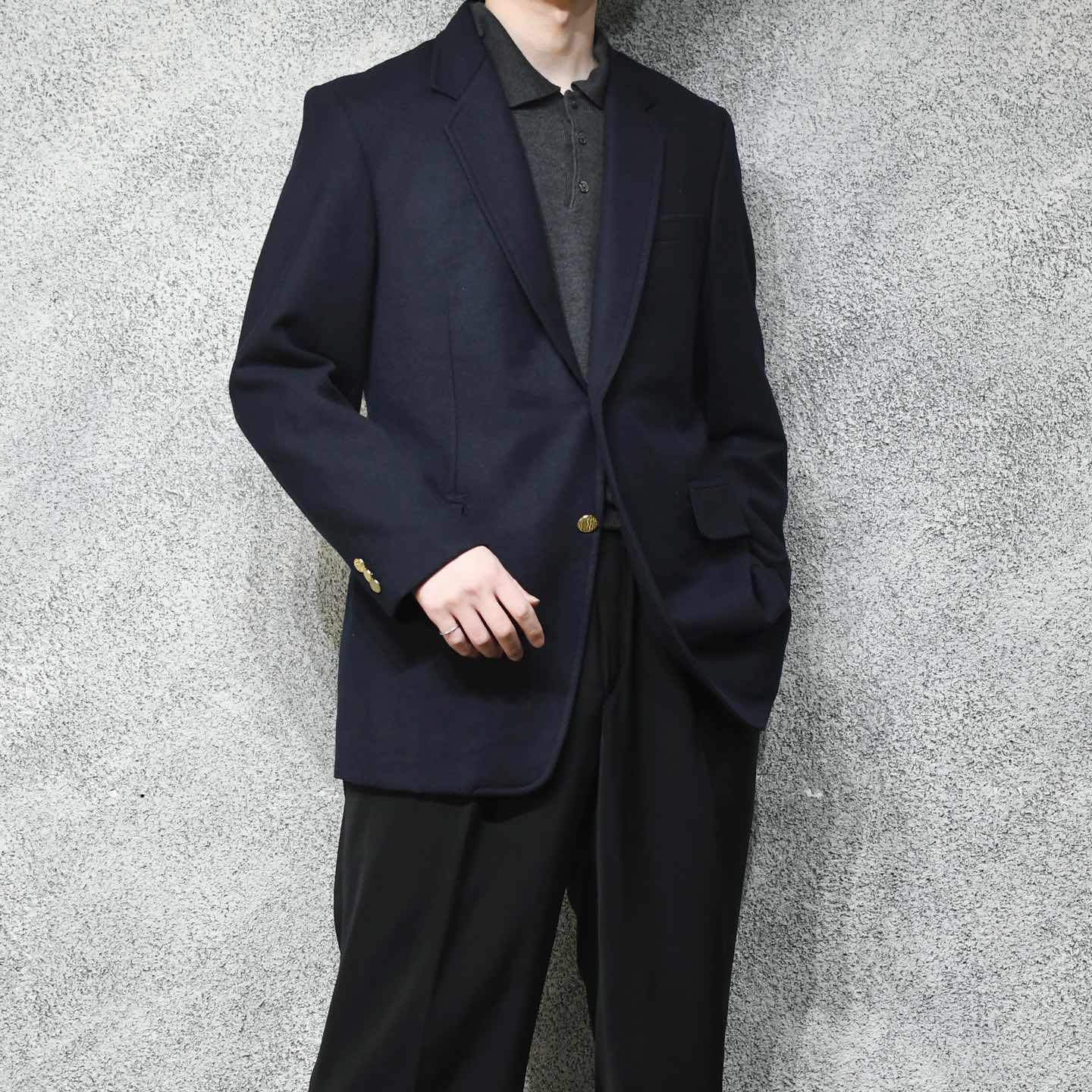 古着 紺ブレ ウール テーラードジャケット ネイビー 紺色 ジャケット ブレザー