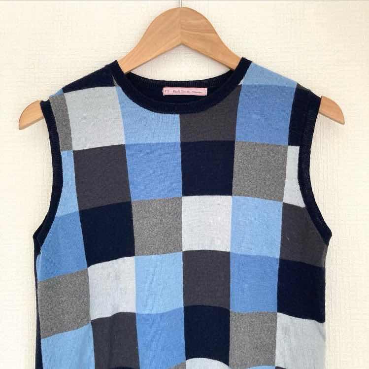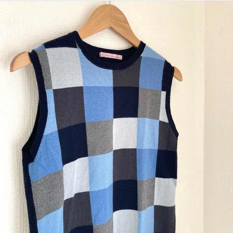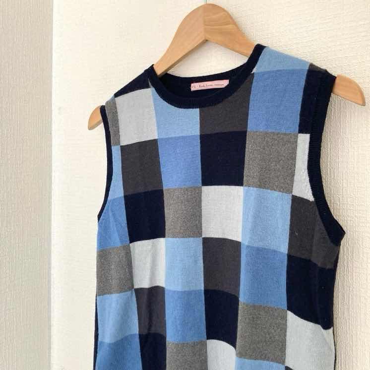 ポールスミス チェック ウール混 ベスト ジレ レディース モノグラム 丸首 M