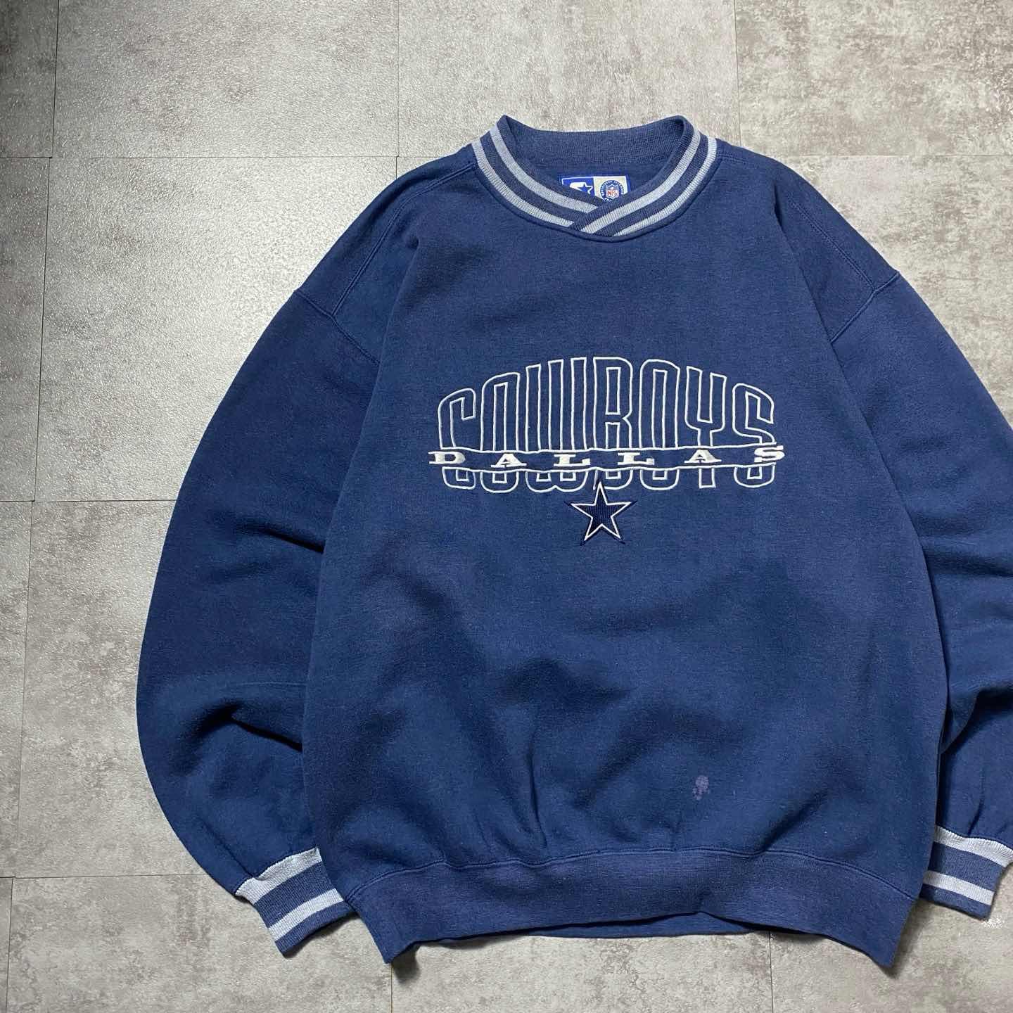90s スターター NFL ダラスカウボーイズ 刺繍ロゴ ラインリブ スウェット