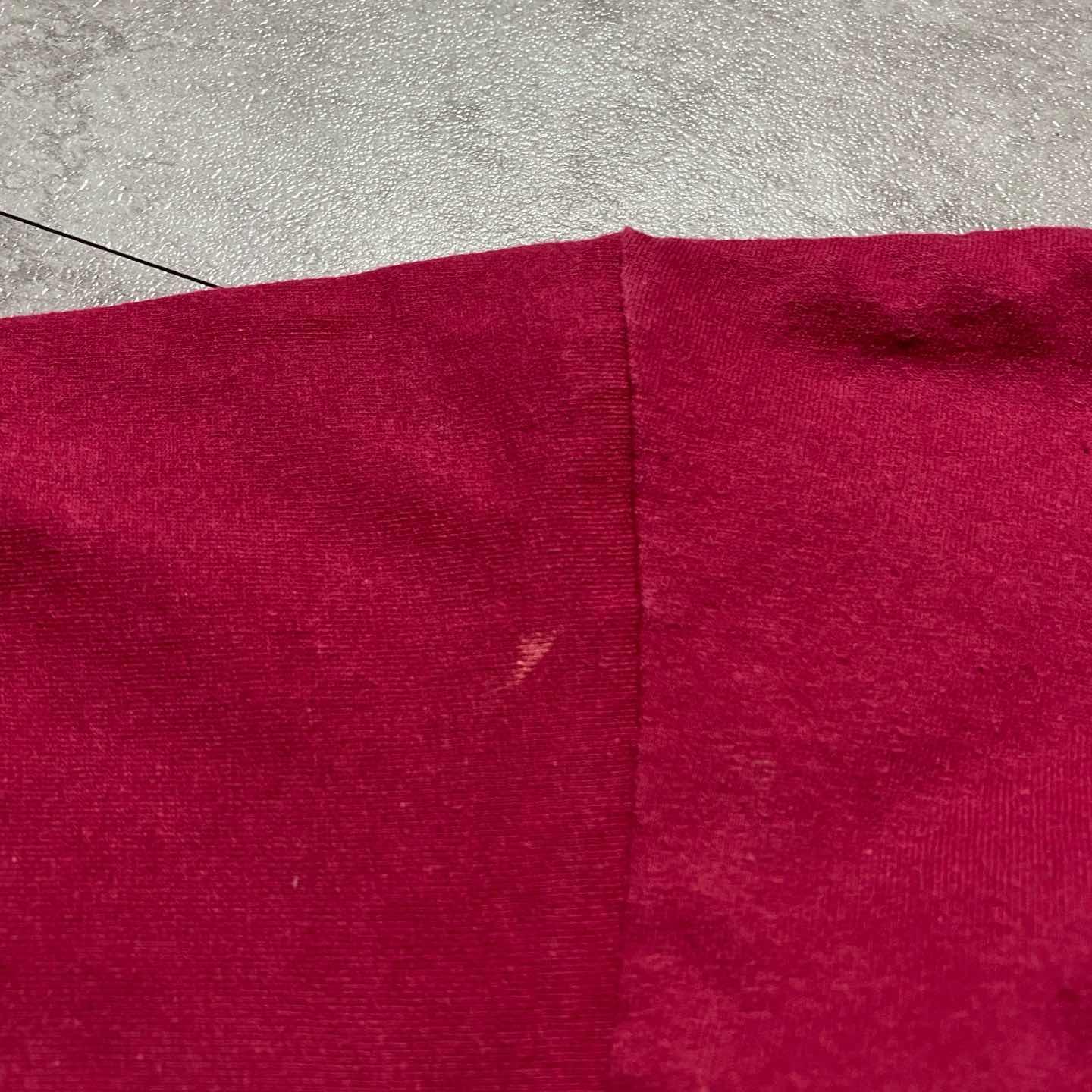 ○Size○ 表記→タグ欠損のため不明(着用感Lサイズ相当) ・着丈65 ・身幅58 ・肩幅52 ・袖丈18 (cm) ○Color○ ・レッド ○Material○ ・タグ欠損のため不明(おそらく100%コットン) ○Condition○ ・首元タグ欠損 ・フロント右肩付近に擦れあり ・フロント左脇腹付近にブリーチ跡あり ・背面一部小さなほつれ箇所あり ○Caution○ 当店で取り扱っている商材は全て『古着』となっております。 そのため、多少の状態難(ほつれ、傷、汚れ、リブの伸び、使用感、擦れ、色あせ、etc)がある場合がございます。 新品同様の完璧なお品物をお求めの方は当店でのお買い物を控えて頂きますよう宜しくお願いします。 また、購入された商品に関しましては、購入日時から起算して『72時間以内に』発送手続きの方を取らせて頂きます。 お急ぎの場合は購入前に当店オンラインストアの方にお問い合わせ頂きますよう宜しくお願いします。 26/187