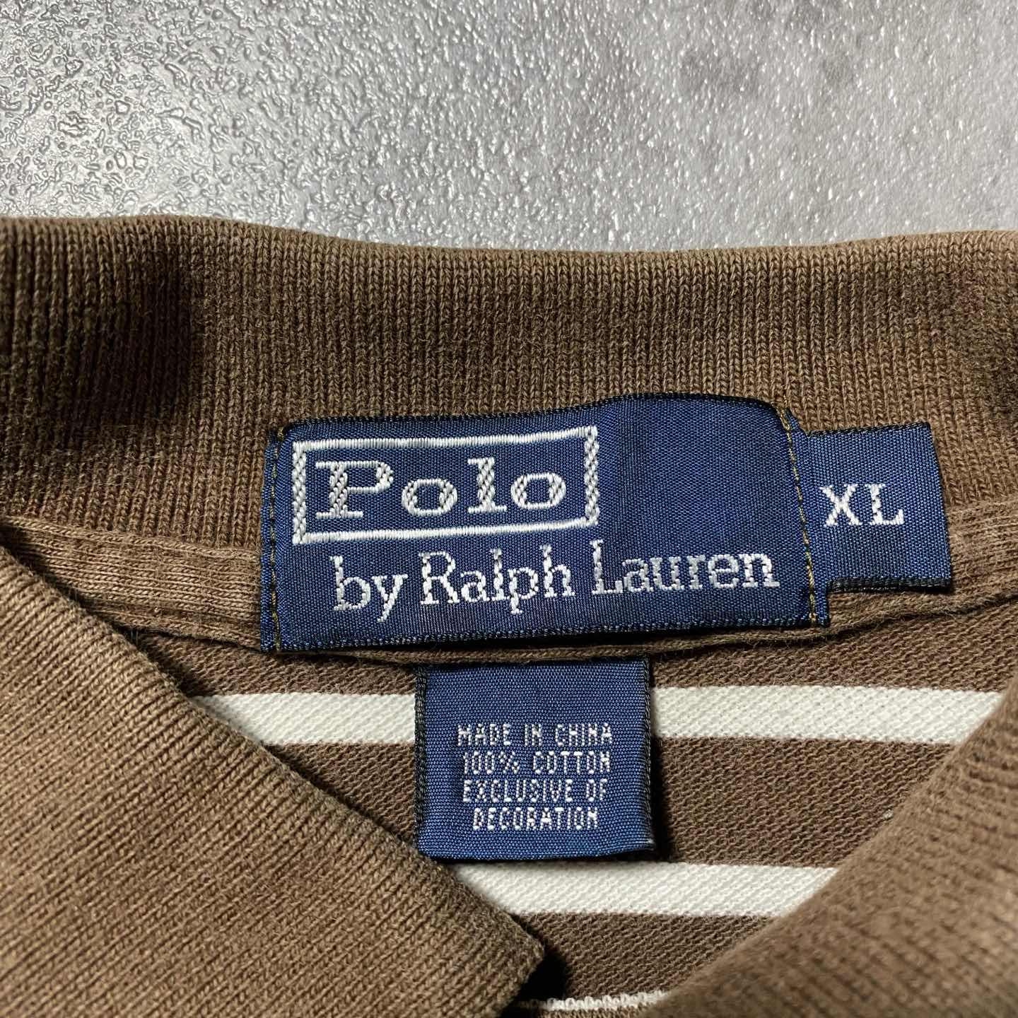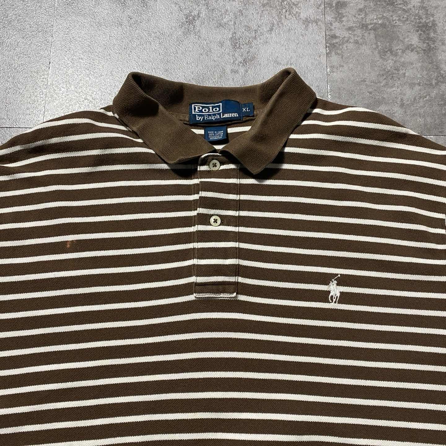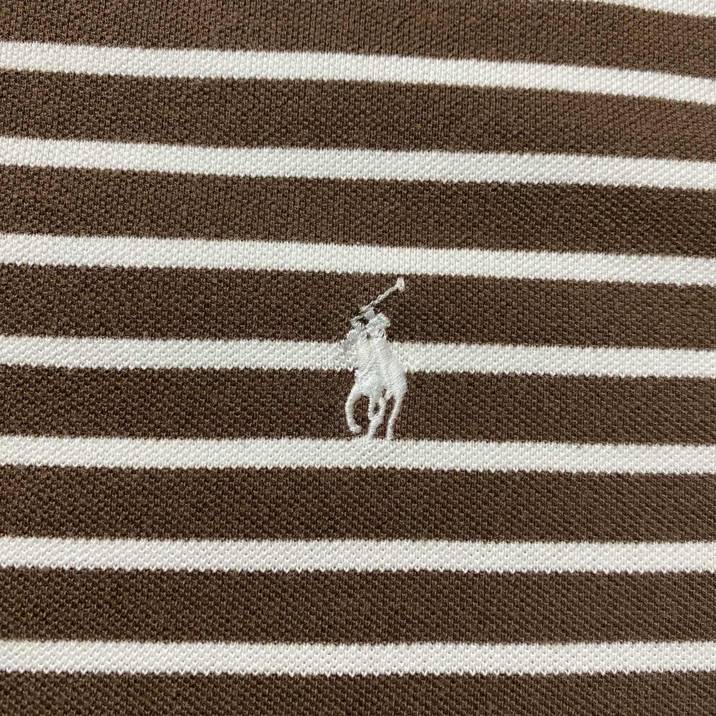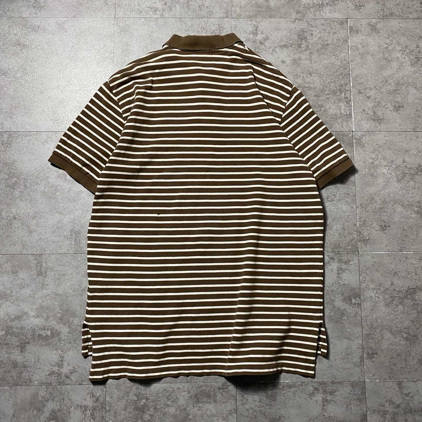 【XL】90s ラルフローレン 刺繍ポニー ブラウン ボーダー ポロシャツ