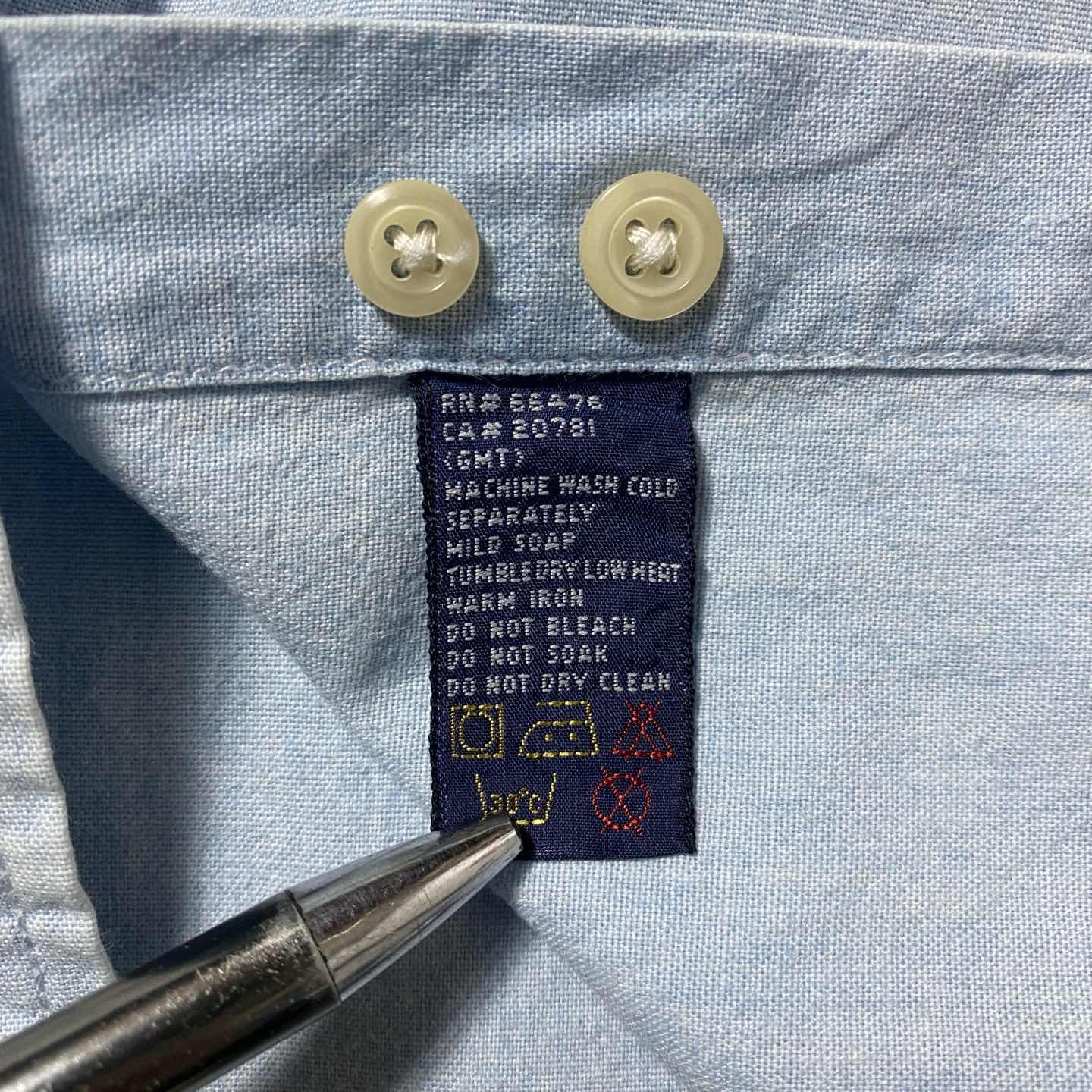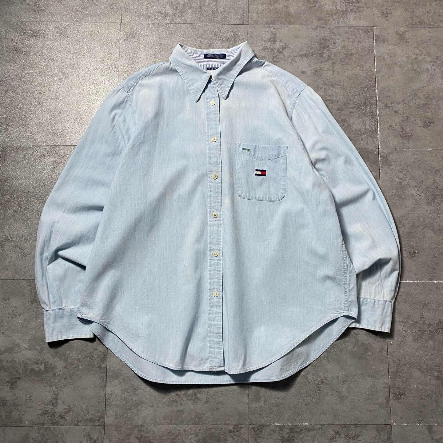 90s トミーヒルフィガー 刺繍ロゴ胸ポケット デニムブルー ボタンダウンシャツ
