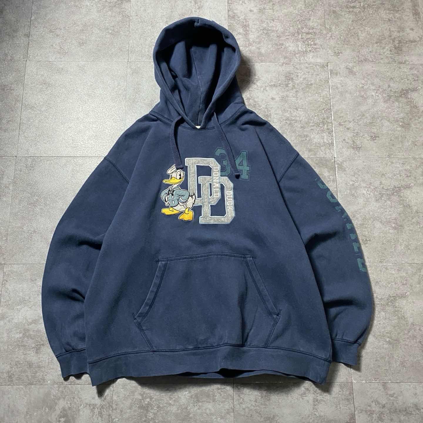 00s ディズニー ドナルドダック ワッペンロゴ アームプリント パーカー