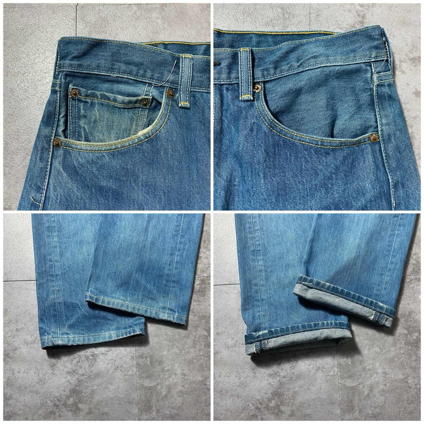 ○Size○ 表記→W34 L34 ・ウエスト84 ・レングス80 ・股上30 ・わたり幅25 ・裾幅21 ・総丈107 ○Color○ ・デニム紺 ○Material○ ・100%コットン ○Condition○ ・フロント数カ所に白く細かな汚れあり ・後ろ面裾先付近にほつれ、白い汚れ箇所あり ○caution○ 当店で取り扱っている商材は全て『古着』となっております。 そのため、多少の状態難(ほつれ、傷、汚れ、リブの伸び、使用感、擦れ、色あせ、etc)がある場合がございます。 新品同様の完璧なお品物をお求めの方は当店でのお買い物を控えて頂きますよう宜しくお願いします。 また、購入された商品に関しましては、購入日時から起算して『72時間以内に』発送手続きの方を取らせて頂きます。 お急ぎの場合は購入前に当店オンラインストアの方にお問い合わせ頂きますよう宜しくお願いします。 26/448
