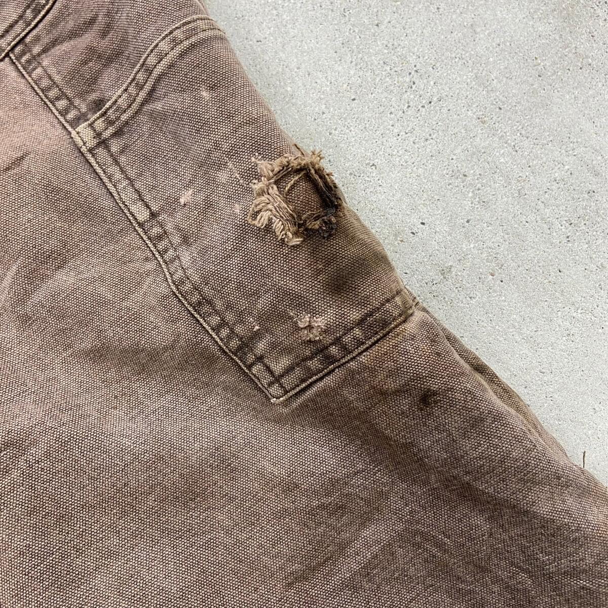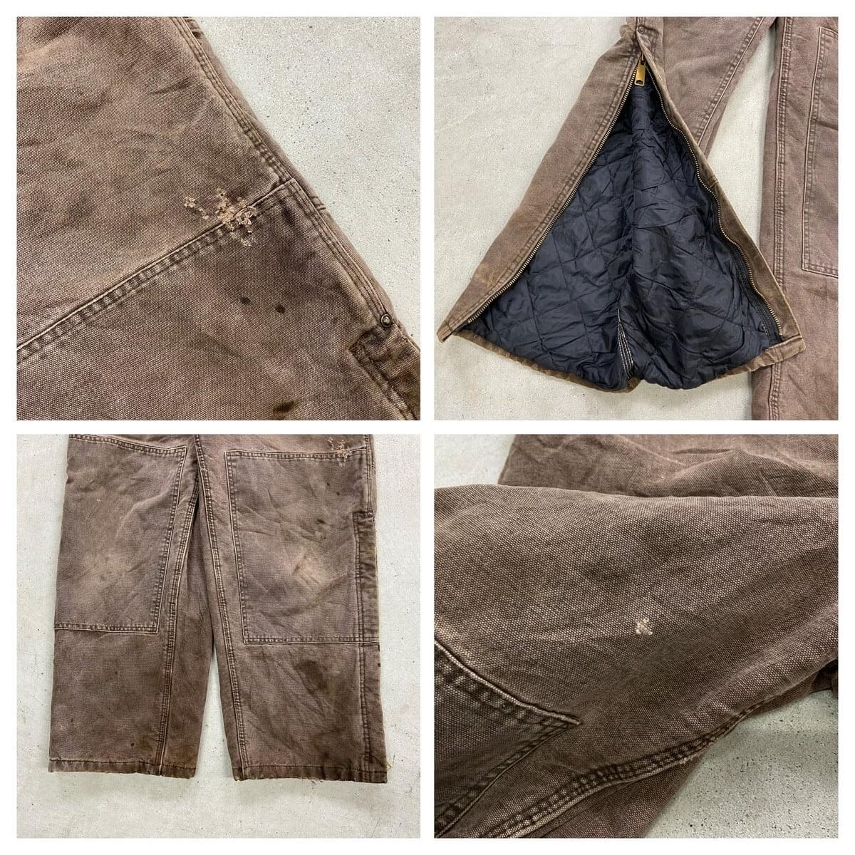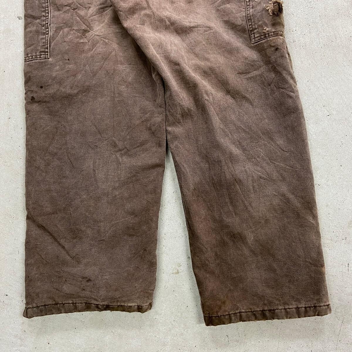■Carhartt カーハート ダック地 ダブルニー オーバーオール メンズW37相当 古着 VINTAGE ヴィンテージ キルティングライナー ボタンフライ フェードブラウン こげ茶色【オーバーオール】/ブラウン 【ブランド】Carhartt カーハート 【サイズ】表記不明(計測値 W37 L25) ※計測値をご確認ください。 総丈(肩から裾)…147(写真の状態の長さです。調節も可能になっています。) ウエスト…(平置き計測?2)…94 ワタリ幅…39 股下…62.5 裾幅…26.5 【生産国】不明 【素材】不明(おそらくコットン) 【状態】内タグが欠損しております。 全体的に色あせ、汚れ、若干のダメージがあり、 ワーク感あふれる一着です。 画像にてご確認ください。 【c260316101】 ※古着は洗濯、検品などのケアを行っております。(新品・デッドストックは洗濯していません。) ※モニターの発色により実物と異なる場合がございます。予めご了承ください。 ※ 海外直輸入USED品になります。