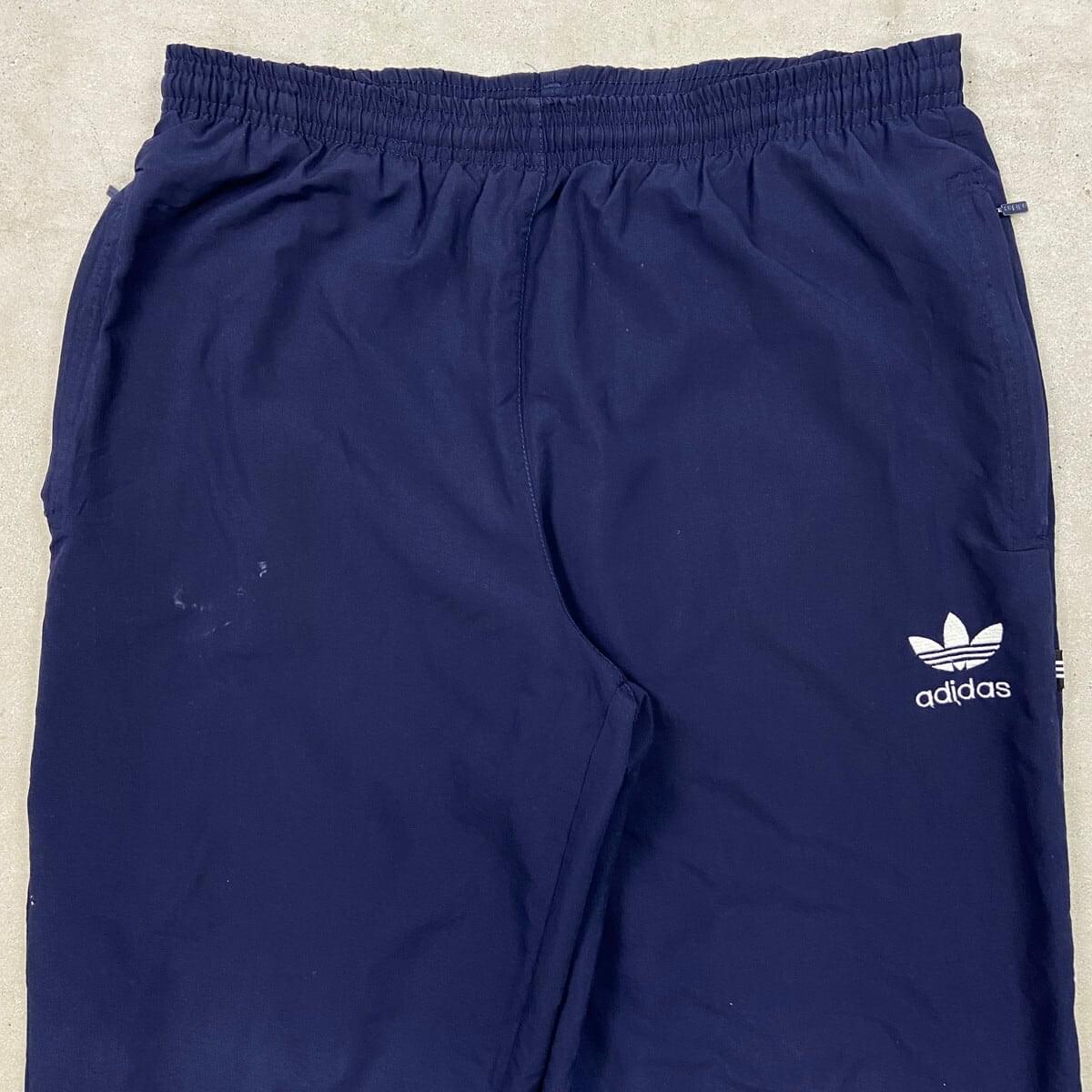 ■90年代 adidas アディダス トレフォイルロゴ トラックパンツ メンズW32相当 古着 90s ヴィンテージ VINTAGE 紺色【ジャージ,ナイロンパンツ】/ネイビー 【ブランド】adidas アディダス 【サイズ】表記 US M(実寸W32相当) ※計測値をご確認ください。 ウエスト(平置き×2)…82(紐で調節可) ワタリ幅…33 股上…31 股下…74 裾幅…17 【生産国】台湾製 【素材】ポリエステル100% 【状態】 フロントに汚れなど多少の使用感はございますが、 その他目立った汚れやダメージ等は無くまだまだ長くご愛用していただけます。 画像にてご確認ください。 【c260308001】 ※古着は洗濯、検品などのケアを行っております。(新品・デッドストックは洗濯していません。) ※モニターの発色により実物と異なる場合がございます。予めご了承ください。 ※ 海外直輸入USED品になります。