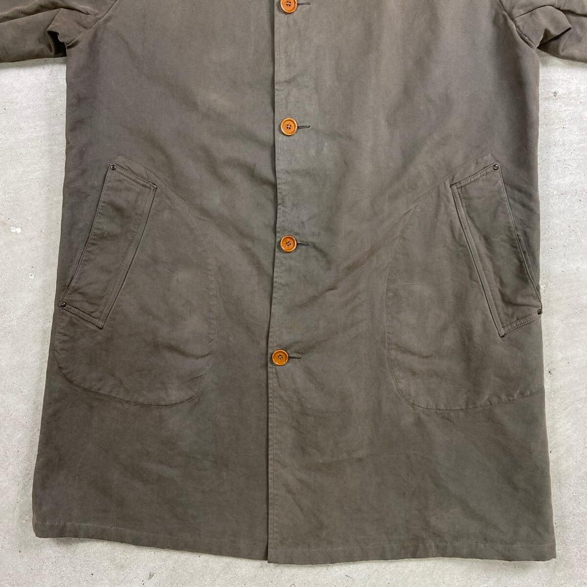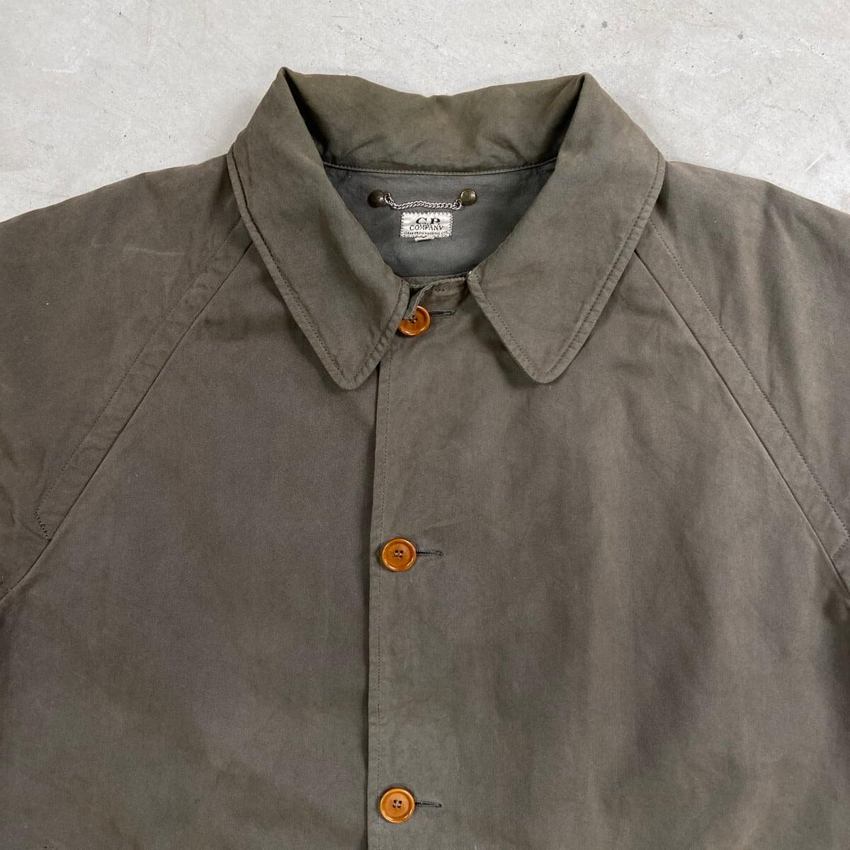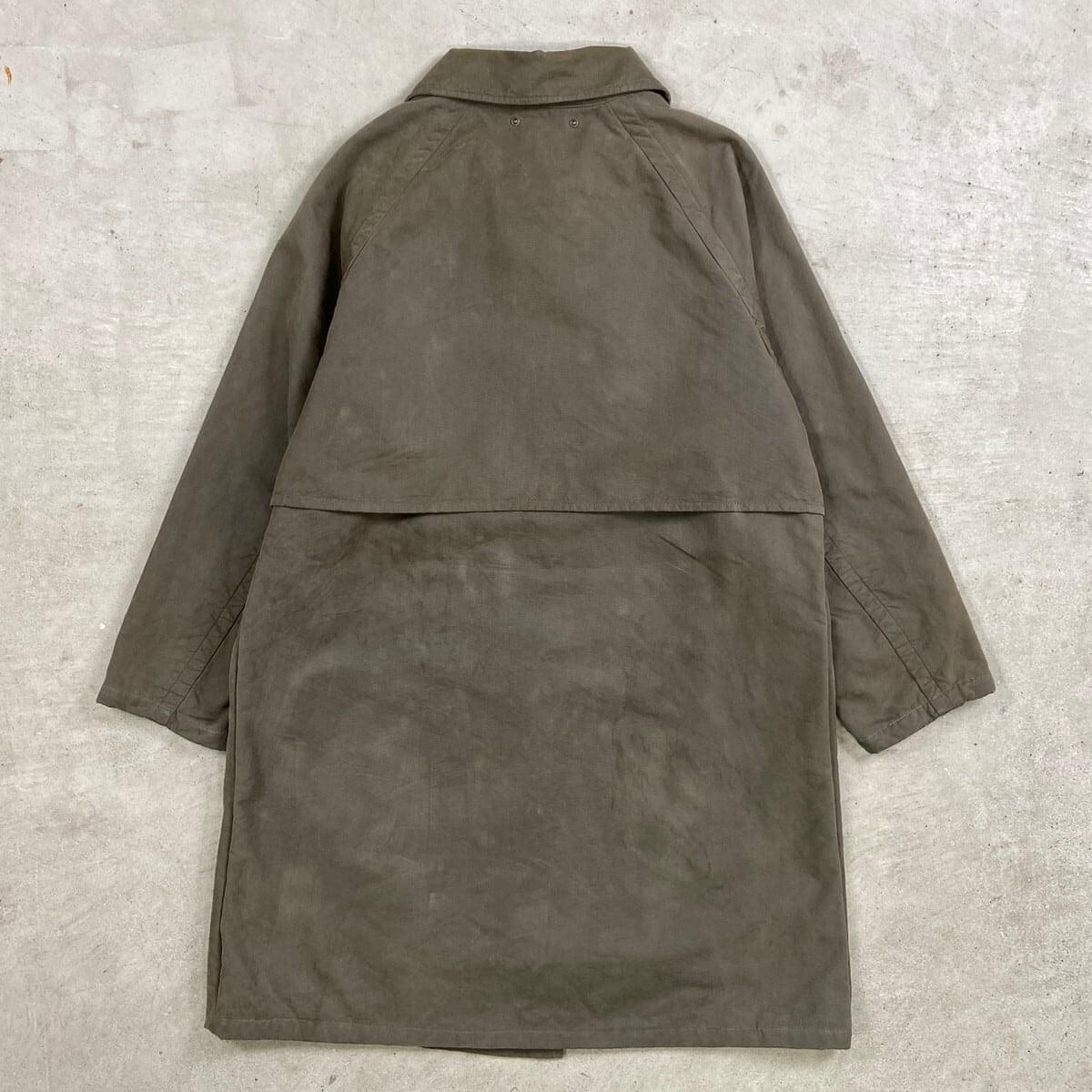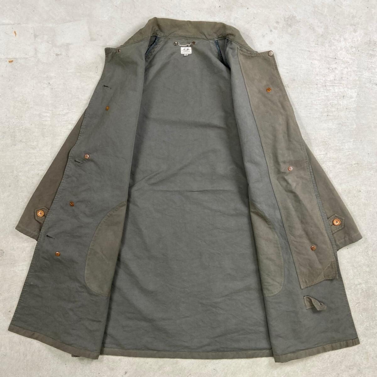 ■80年代 C.P.COMPANY MASSIMO OSTI期 ステンカラーコート バルマカーンコート メンズXL相当 古着 80s VINTAGE ヴィンテージ マッシモ オスティ期 セージグリーン【コート】/カーキグリーン ◎1989年製A/Wのマッシモ・オスティが在籍時に手掛けたコートになります。 【ブランド】C.P.COMPANY 【サイズ】表記 48 (実寸メンズXL相当) ※計測値をご確認ください。 着丈…99.5 身幅…62.5 裄丈…74.5 袖丈(脇下計測)…47 【生産国】不明 【素材】不明(おそらくコットン) 【状態】使用感による色あせがございます。 右袖上部に目立たない程度の薄汚れがあります。 画像にてご確認ください。 【c260302105】 ※古着は洗濯、検品などのケアを行っております。(新品・デッドストックは洗濯していません。)