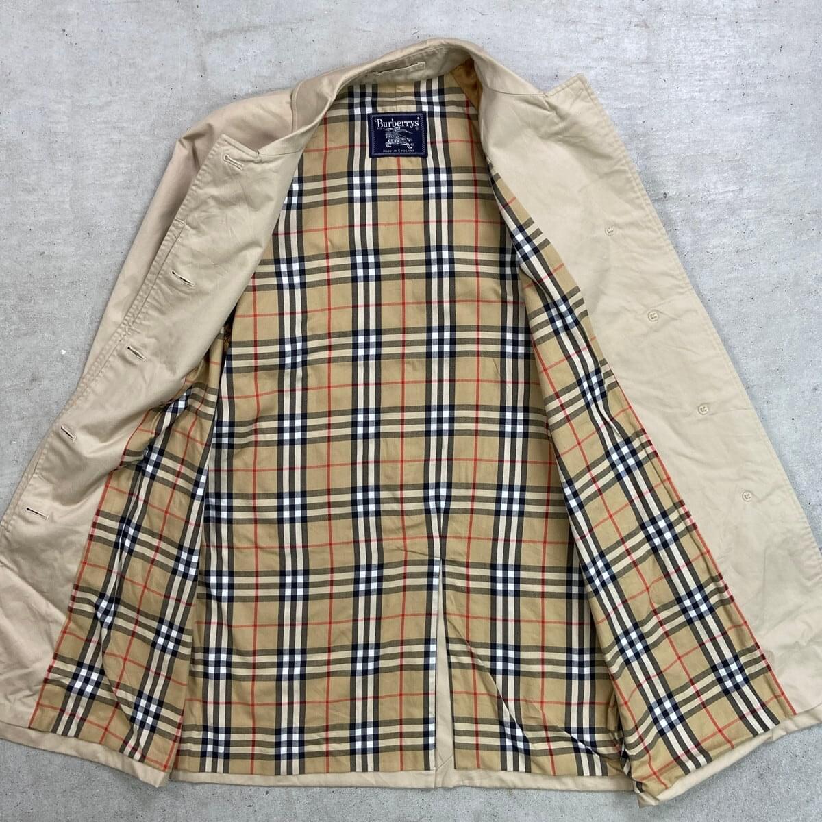 ■70~80年代 英国製 Burberry's バーバリー ステンカラーコート バルマカーンコート メンズM相当 レディースM~L相当 古着 70s 80s ヴィンテージ VINTAGE PRORSUM プローサム バーバリーチェック ノバチェック カーキベージュ【コート】/ベージュ ◎レディース規格ですが、メンズでも着用可能なサイズ感です。 【ブランド】Burberry's バーバリー 【サイズ】表記 14 R(実寸メンズM相当 レディースM~L相当) ※計測値をご確認ください。 着丈...92 身幅…55 裄丈…72 袖丈(脇下計測)…49 【生産国】英国製 【素材】ポリエステル49% コットン51% 【状態】使用感はありますが、目立ったダメージや汚れはなく、 まだまだ愛用していただけます。 画像にてご確認ください。 【c260301115】 ※古着は洗濯、検品などのケアを行っております。(新品・デッドストックは洗濯していません。) ※モニターの発色により実物と異なる場合がございます。予めご了承ください。 ※ 海外直輸入USED品になります。