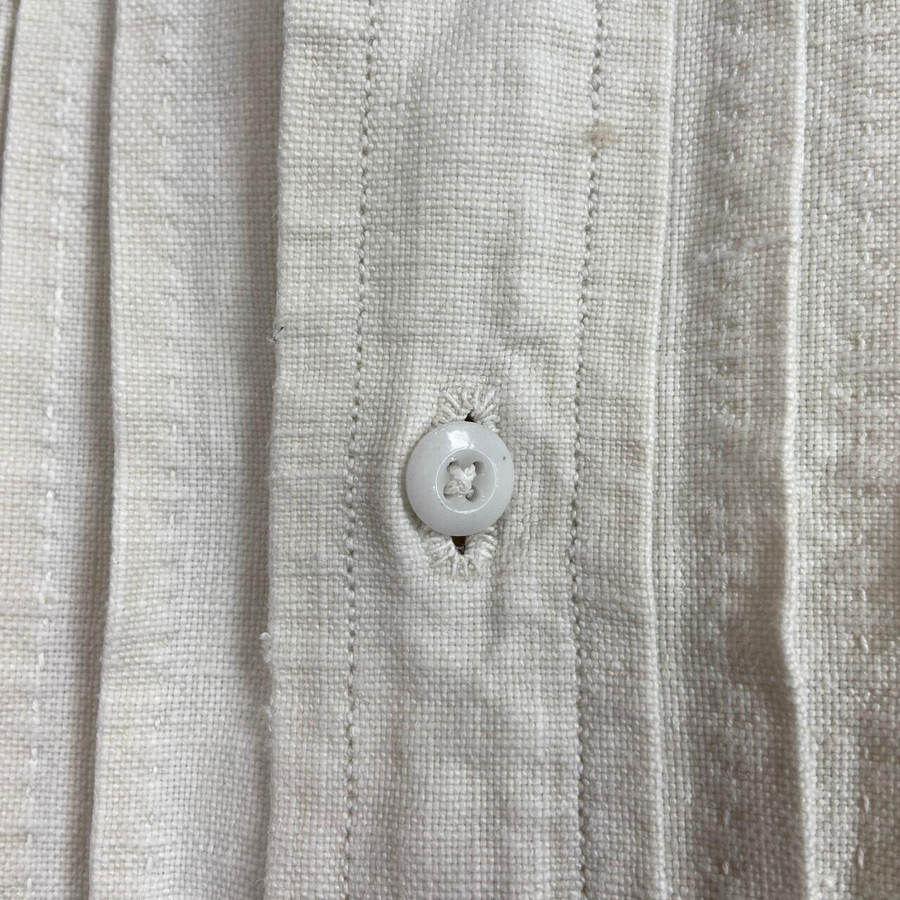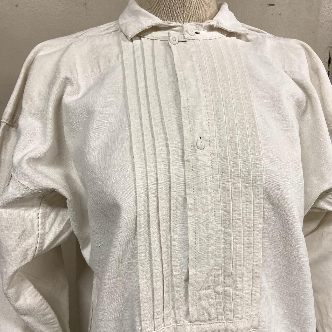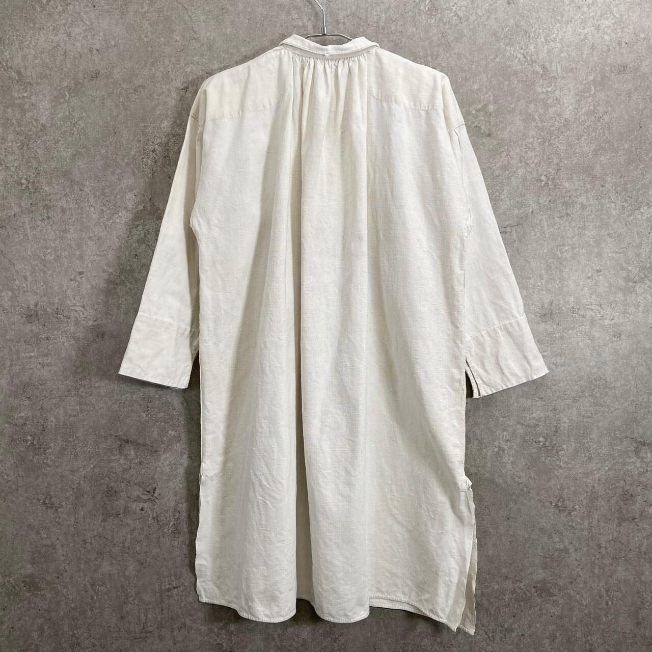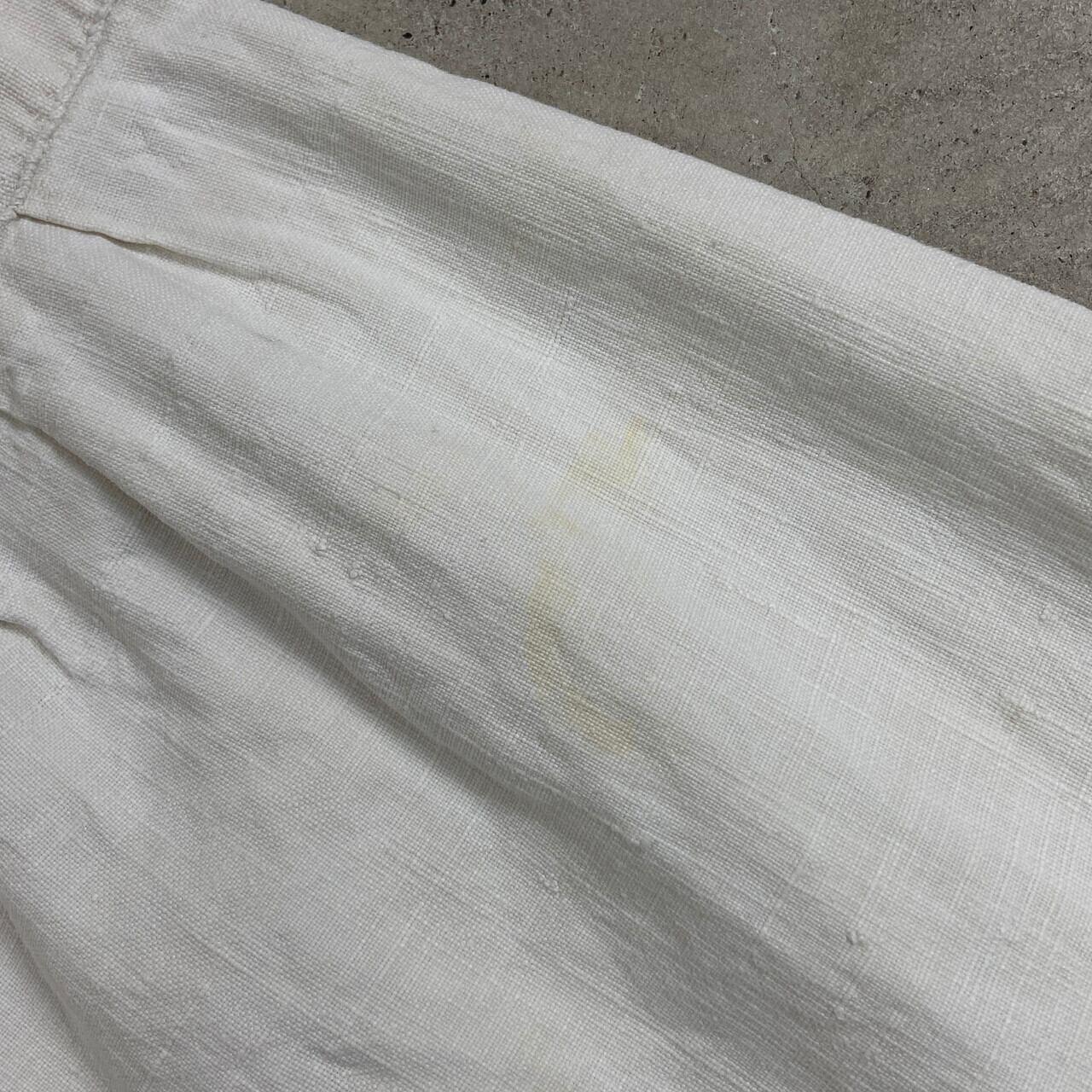 ■1900年代初頭 アンティーク リネンスモック ワンピース レディースL-XL相当 古着 VINTAGE ユーロヴィンテージ ナイトドレス グランパシャツ フランスアンティーク 白色【ブラウス】/ホワイト 1900年代初頭にフランスの農夫が作業着として愛用していた本物のアンティーク・リネンスモック(ファーマーズスモック)です。現代の多くのブランドがサンプリングする「元ネタ」そのものであり、歴史的な資料価値も非常に高い一着です。 当時のアンティーク品はタイトな作りが多い中、こちらは肩幅54cmという大変希少な大判サイズです。 現代のドロップショルダーとして理想的なシルエットで、レディースのL~XLサイズ相当としてゆったりとご着用いただけます。 【サイズ】(着用感レディースL-XL相当) ※計測値をご確認ください。 着丈…95 肩幅…54 身幅…54 袖丈…45.5 【生産国】フランスまたはフランス圏内(推定) 【素材】リネンのような風合いの生地 【状態】約100年前のアンティーク品としては、非常に良好な状態を保っています。 目立つ大きなダメージや汚れは見当たりませんが、アンティーク特有の細かなスレや、経年による風合いの変化はございます。 【c260221152】 ※古着は洗濯、検品などのケアを行っております。(新品・デッドストックは洗濯していません。) ※モニターの発色により実物と異なる場合がございます。予めご了承ください。 ※ 海外直輸入USED品になります。