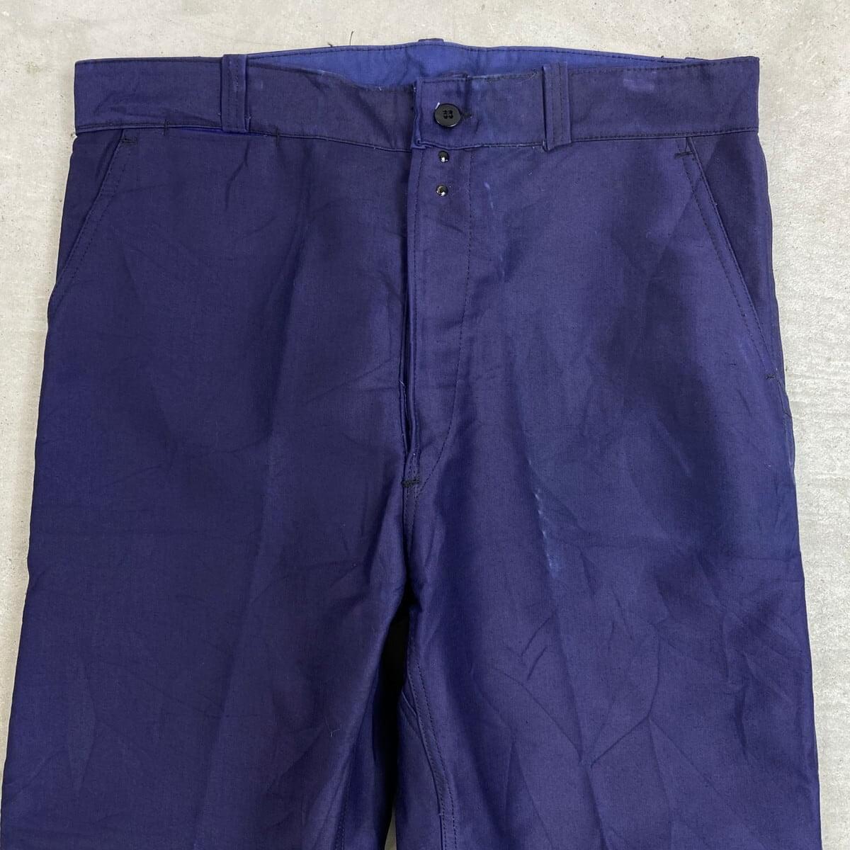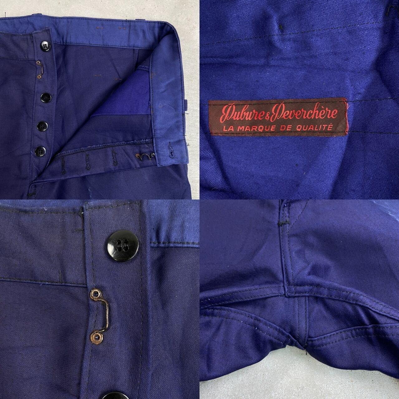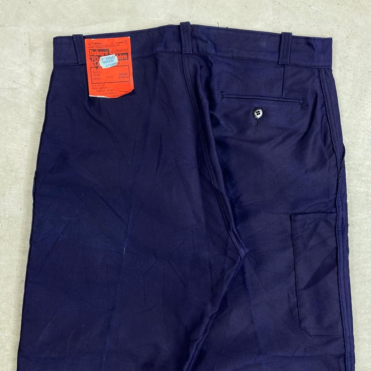 ■DEAD STOCK NOS 50年代 Dubure & Deverch?re ブルーモールスキン フレンチワークパンツ メンズW35相当 古着 50s VINTAGE ヴィンテージ デッドストック フラッシャー付き ユーロワーク インクブルー 紺色【ワークパンツ】/ネイビー 【ブランド】Dubure & Deverch?re 【サイズ】表記 46 C (実寸メンズW36 L28) ※計測値をご確認ください。 ウエスト(平置き計測×2)…92 股上...34 ワタリ幅…35 股下…72 裾幅…24.5 【生産国】不明 【素材】コットン100% 【状態】デッドストック(新品未使用品)ですが、 畳んであった状態での色あせがございます。 画像にてご確認ください。 【c260221118】 ※古着は洗濯、検品などのケアを行っております。(新品・デッドストックは洗濯していません。) ※モニターの発色により実物と異なる場合がございます。予めご了承ください。 ※ 海外直輸入USED品になります。