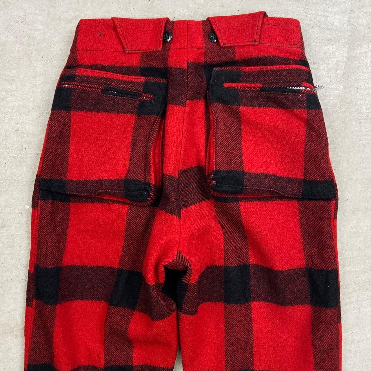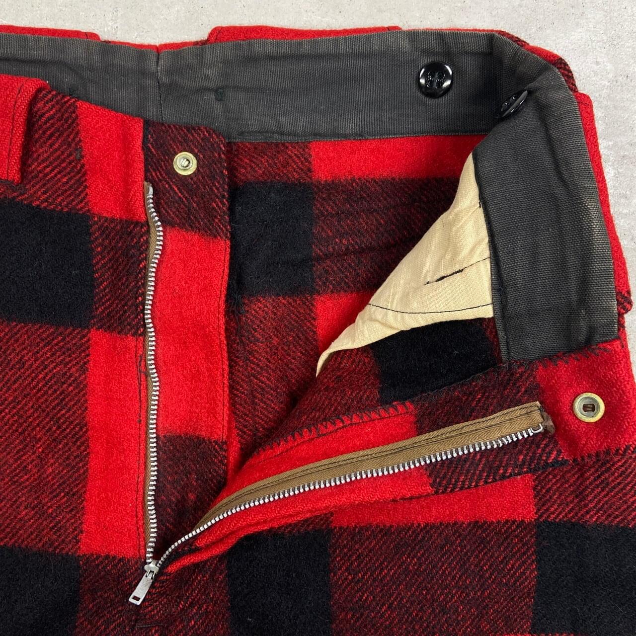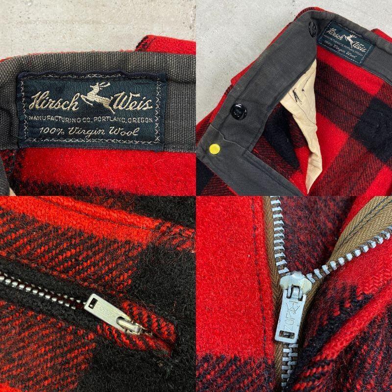 ■50年代 Hirsch Weis ウール ハンティングパンツ バッファローチェック メンズW30相当 古着 50s チェック柄 ヴィンテージ VINTAGE ハーシュ・ワイス ホワイト・スタッグ【ロングパンツ】/レッド【スラックス,スタプレ】/ブラック 50年代頃のWHITE STAG(ホワイト・スタッグ)の前身ブランド Hirsch Weis( ハーシュ・ワイス )のウールハンティングパンツになります。 【サイズ】表記 不明(実寸W30相当) ※計測値をご確認ください。 ウエスト(平置き×2)…77 ワタリ幅…33 股上…35 股下…71 裾幅...15.5 【生産国】不明 【素材】ウール 【状態】 年代物になりますが状態は悪くなくまだまだ長く愛用していただけます。 右ふくらはぎあたりにリペア跡があります。 画像にてご確認ください。 【c260216150】 ※古着は洗濯、検品などのケアを行っております。(新品・デッドストックは洗濯していません。) ※モニターの発色により実物と異なる場合がございます。予めご了承ください。 ※ 海外直輸入USED品になります。