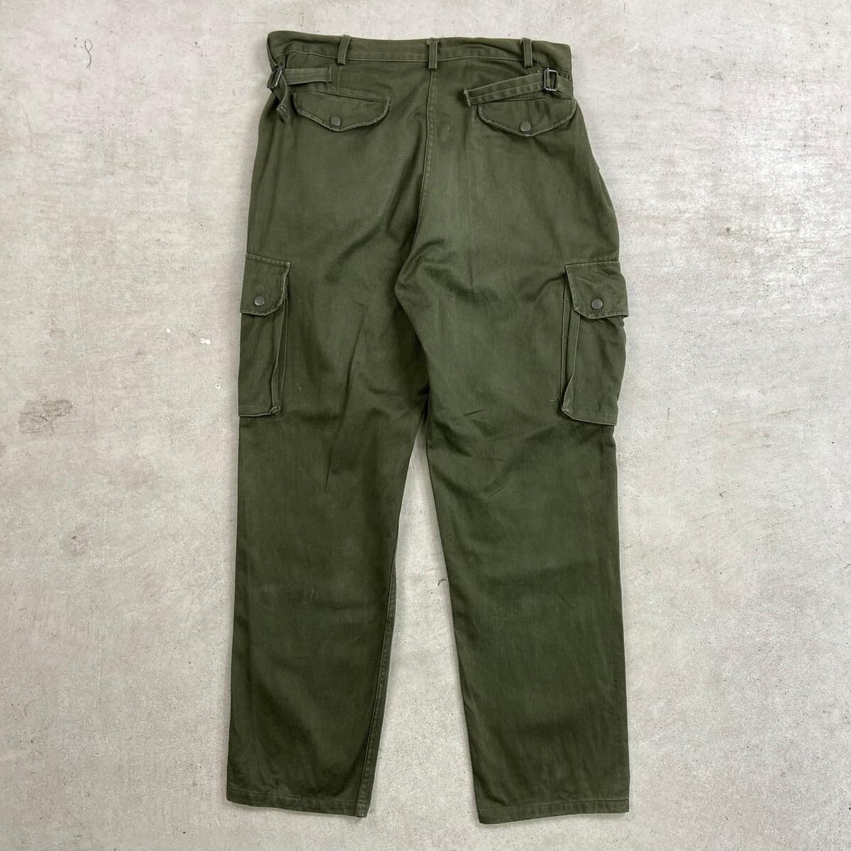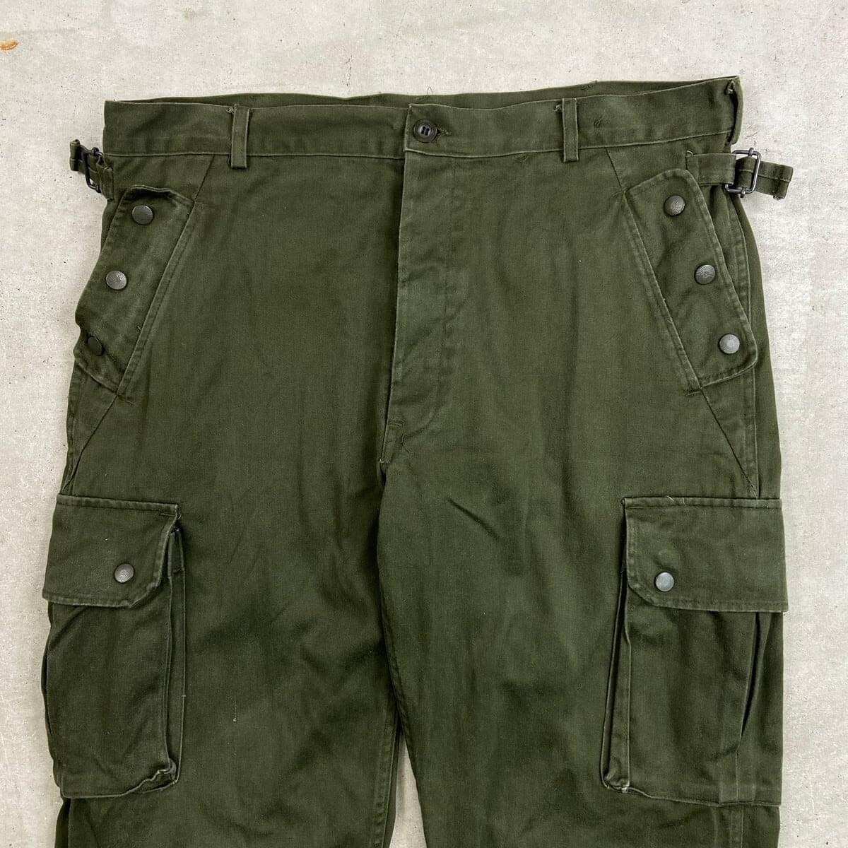 ■90年代 フランス軍 M-47 TAP47 パラトルーパーパンツ メンズW38相当 古着 90s VINTAGE ヴィンテージ ユーロミリタリー カーゴパンツ パラシュートパンツ オリーブグリーン【ミリタリーパンツ】/カーキグリーン 【サイズ】表記 100(実寸W38相当) ※計測値をご確認ください。 ウエスト(平置き×2)…96 ワタリ幅…31 股上…31 股下…77 裾幅…20 【生産国】不明 【素材】コットン100% 【状態】 多少の使用感はございますが、 目立った汚れやダメージ等は無くまだまだ長くご愛用していただけます。 画像にてご確認ください。 【c260214034】 ※古着は洗濯、検品などのケアを行っております。(新品・デッドストックは洗濯していません。) ※モニターの発色により実物と異なる場合がございます。予めご了承ください。 ※ 海外直輸入USED品になります。