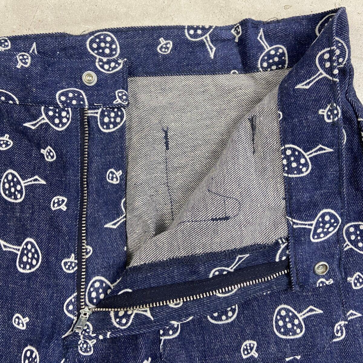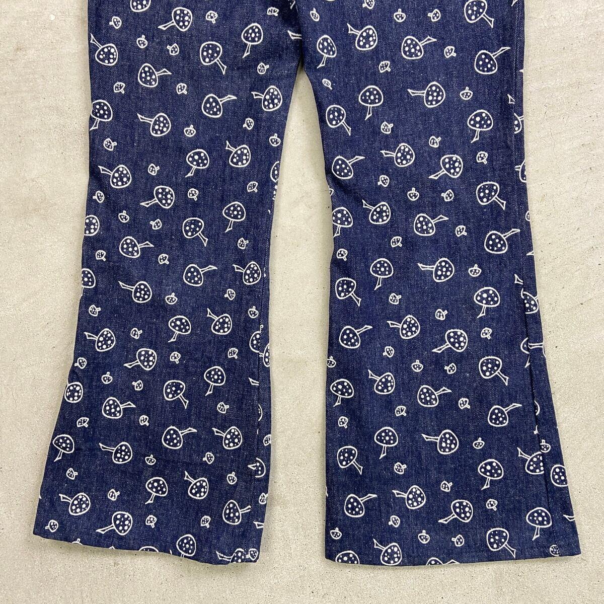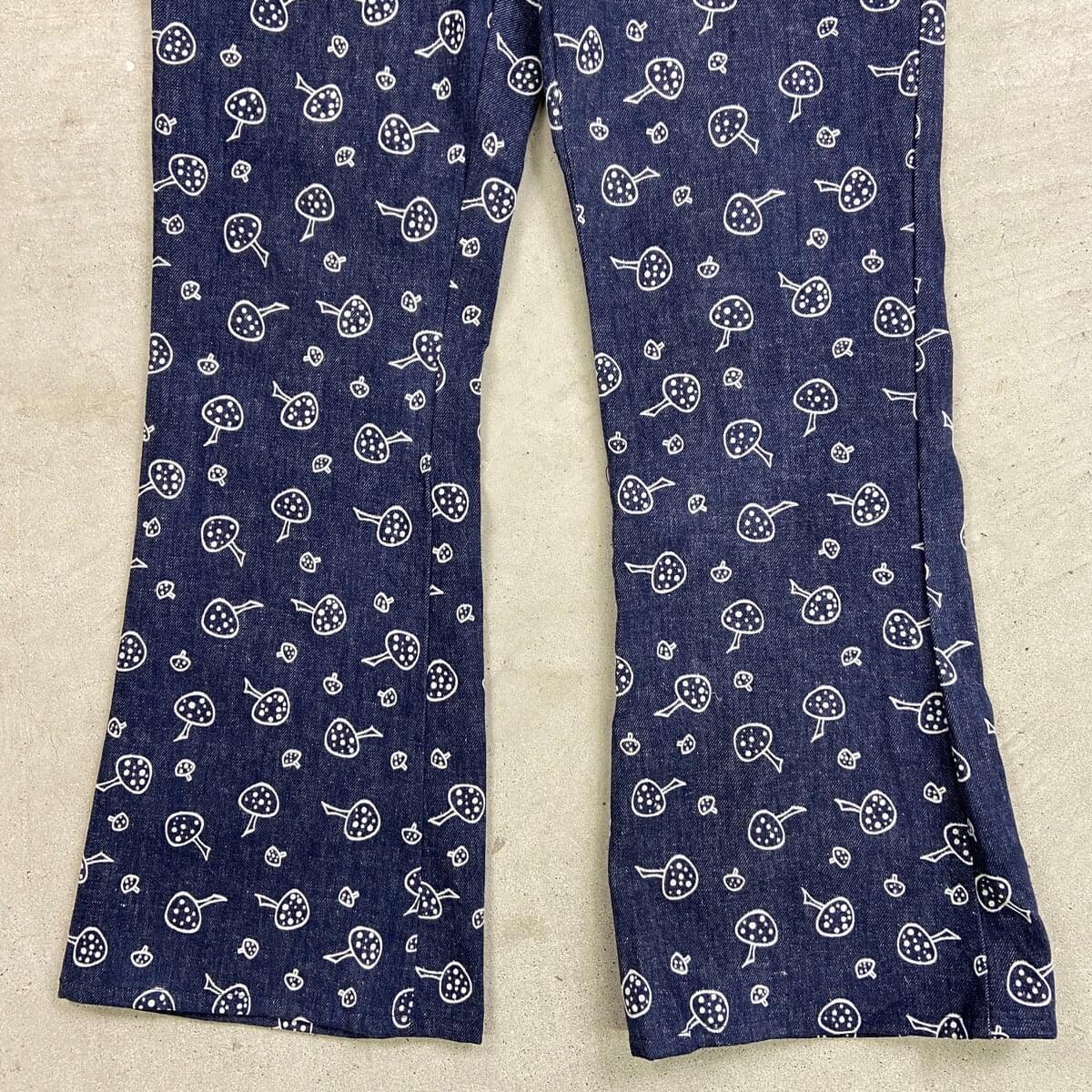 ■70年代 総柄 キノコ柄 デニムフレアパンツ メンズW34相当 古着 70s VINTAGE ヴィンテージ アメカジ ストア系 ジーンズ 濃紺 紺色【デニムパンツ】/ネイビー ◎70年代頃のストア系ブランドの デニムフレアパンツになります。 人気の総柄アイテムでグッドなキノコ柄。 あまり市場に出回らないコレクタブルアイテムになります。 【サイズ】表記 不明(実寸約W34相当) ※計測値をご確認ください。 ウエスト(平置き×2)…86 ワタリ幅…29 股上…29 股下…81 裾幅…27 【生産国】不明 【素材】不明 おそらくコットンかと思われます。 【状態】あまり使用感もなく綺麗な状態です。 画像にてご確認ください。 【c260207015】 ※古着は洗濯、検品などのケアを行っております。(新品・デッドストックは洗濯していません。) ※モニターの発色により実物と異なる場合がございます。予めご了承ください。 ※ 海外直輸入USED品になります。