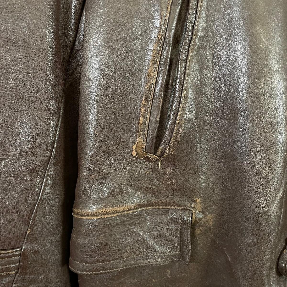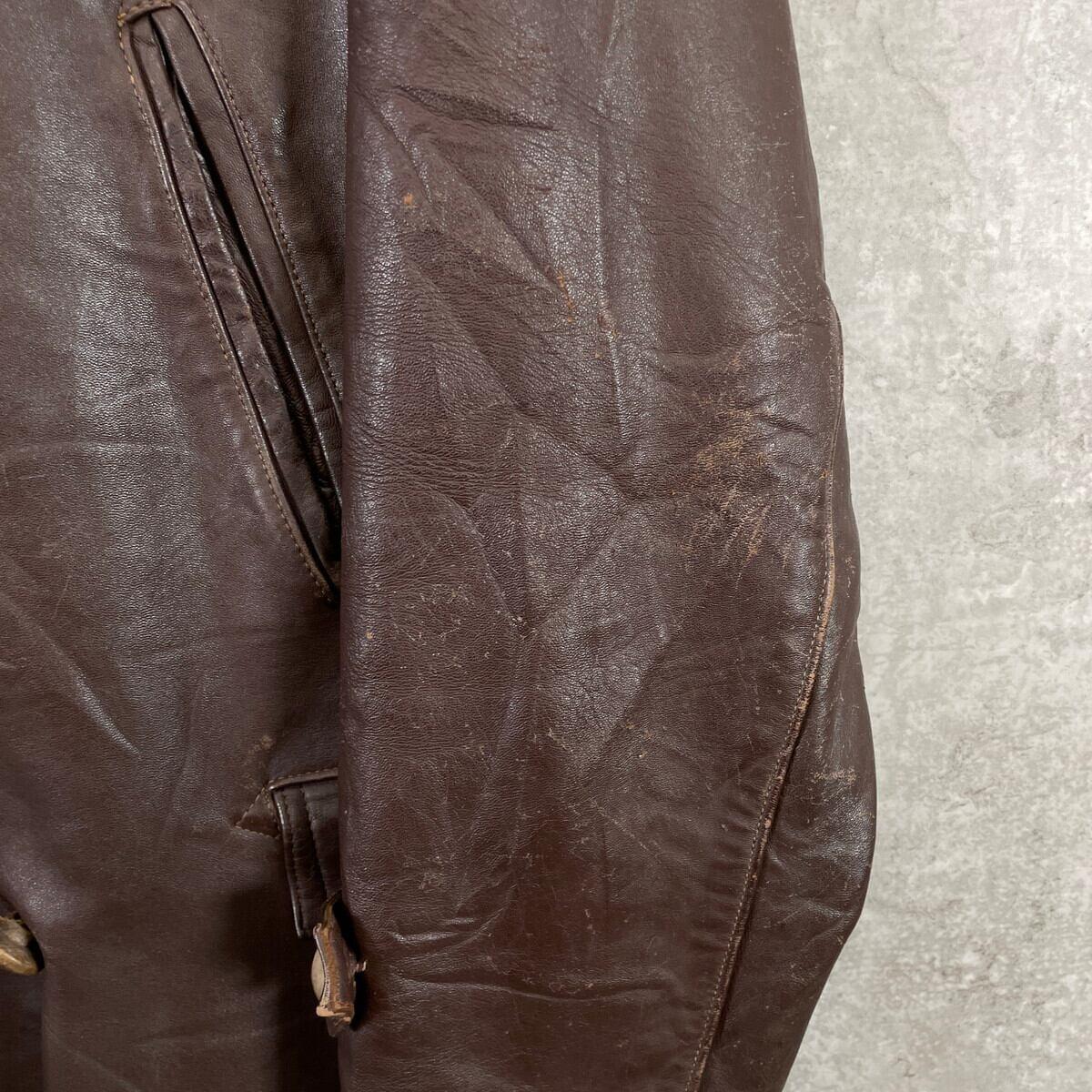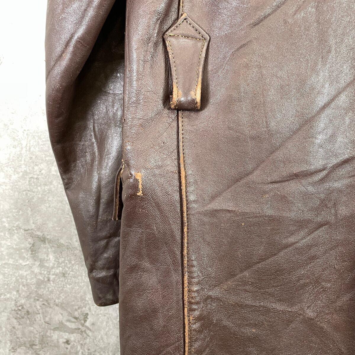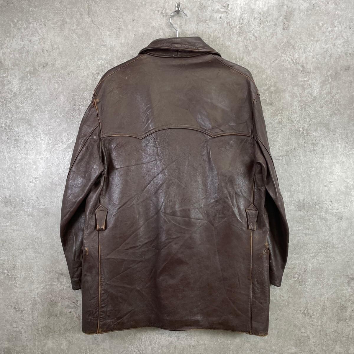 ■50~60年代 フランス レザー マッキノーコート メンズXL相当 古着 50s 60s VINTAGE ヴィンテージ コの字留め カーコート ユーロ 茶色【レザージャケット】/ブラウン 【サイズ】表記 不明(着用感メンズXL相当) 計測値をご確認ください。 着丈…80.5 身幅…60 肩幅…53 袖丈…59 【素材】本革 【生産国】不明 【状態】全体的に擦れやダメージ、裏地に薄汚れなどの使用感がございます。 ライナー、襟パーツ、ウエストベルトが欠品しております。 画像にてご確認ください。 【c260123004】 ※古着は洗濯、検品などのケアを行っております。(新品・デッドストックは洗濯していません。) ※モニターの発色により実物と異なる場合がございます。予めご了承ください。 ※ 海外直輸入USED品になります。