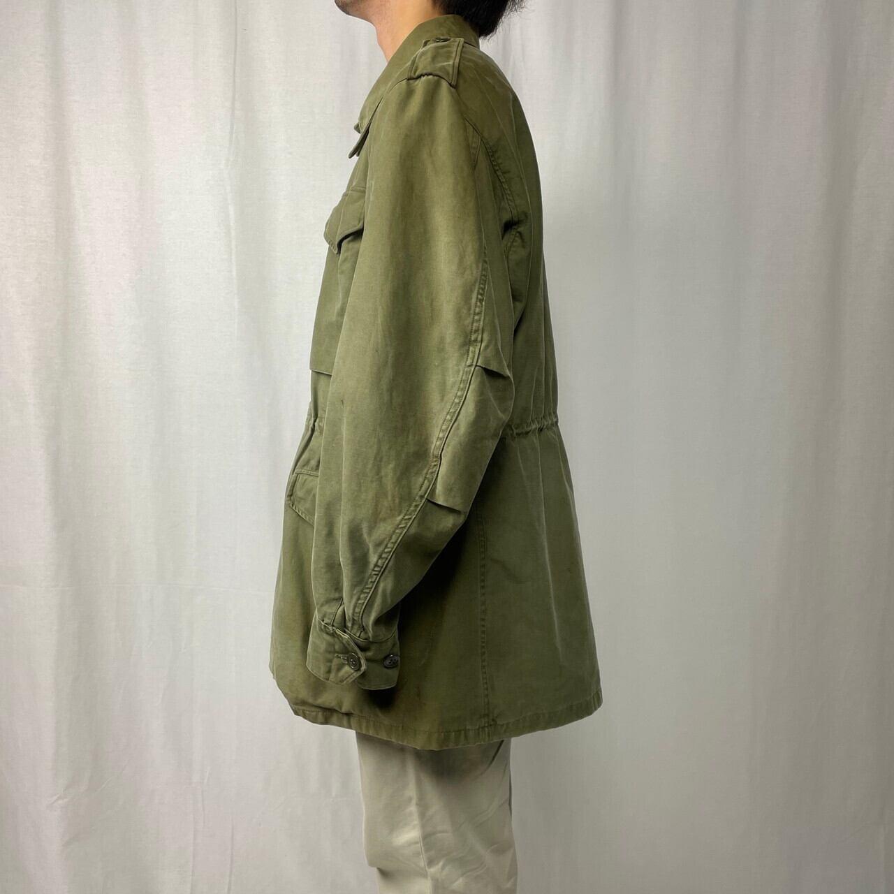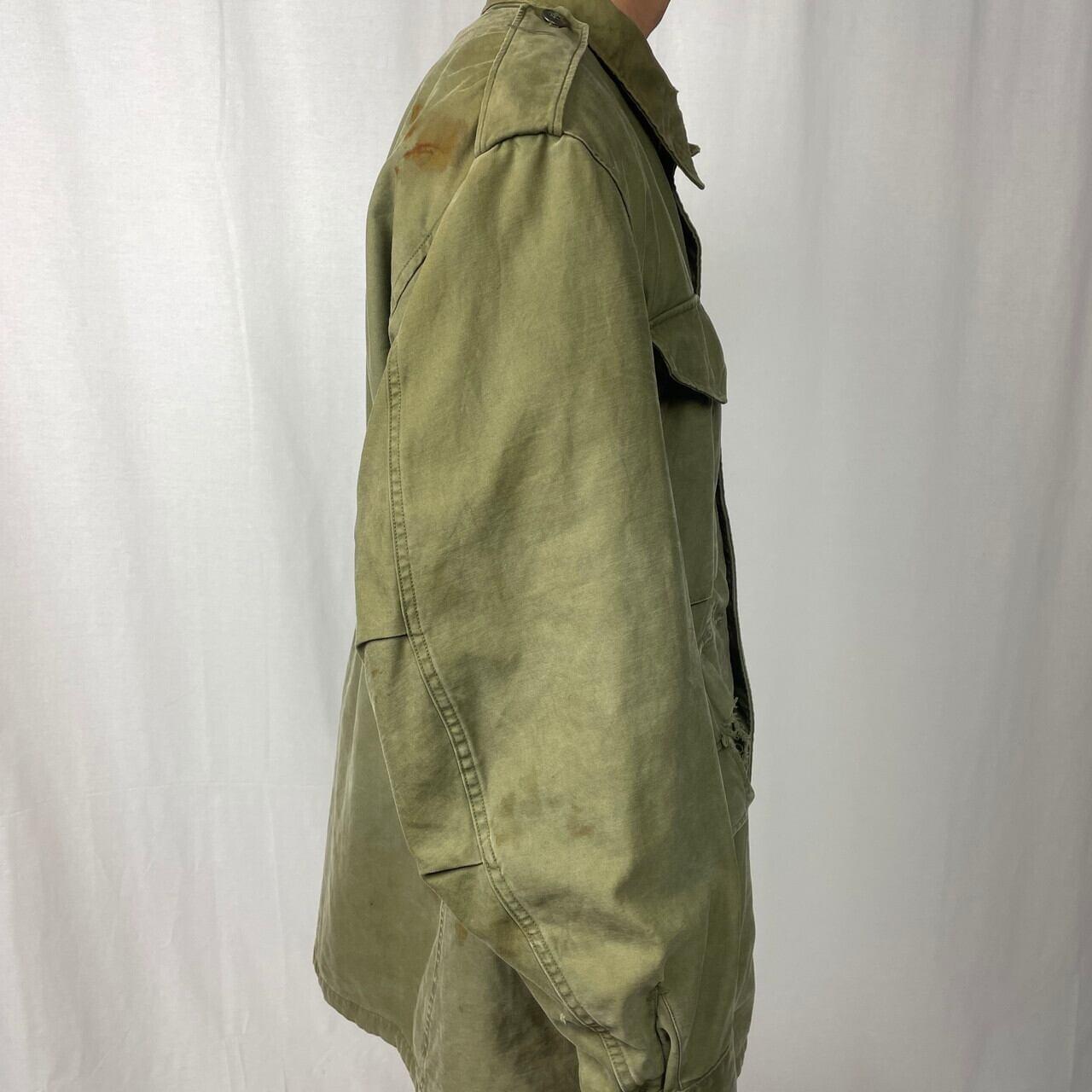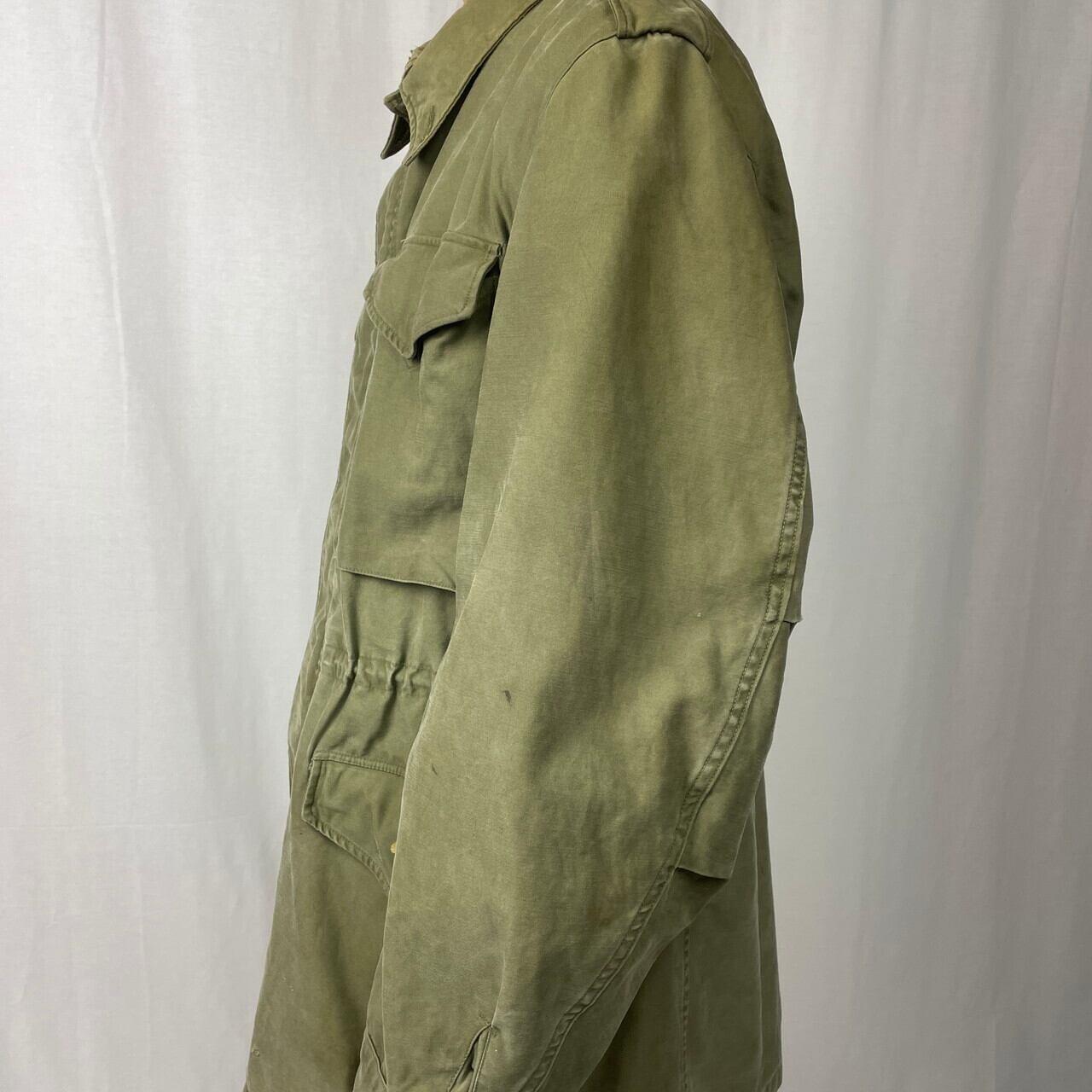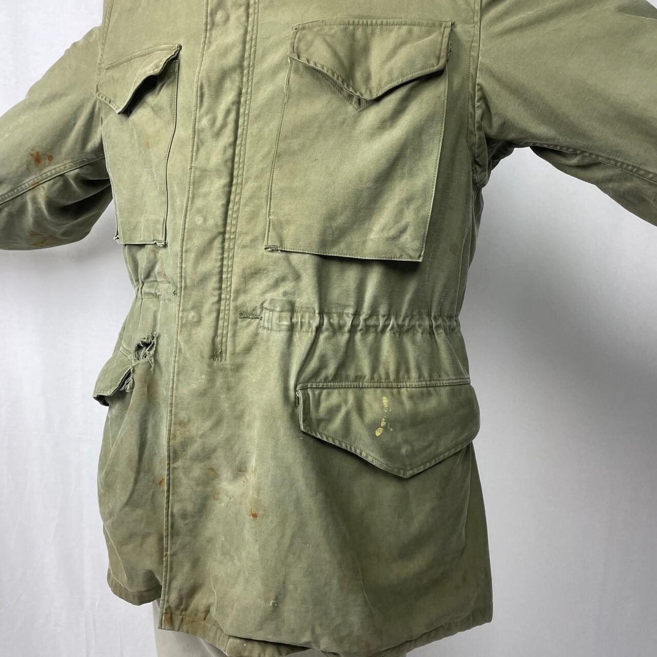 ■50年代 U.S.ARMY 米軍実品 M-51 ミリタリー フィールドジャケット メンズXL相当 古着 50s M-1951 ヴィンテージ VINTAGE オリーブグリーン【ミリタリージャケット】/カーキグリーン 【サイズ】表記 Long Medium(着用感メンズXL相当) モデル身長172cm ※計測値をご確認ください。 着丈…84 身幅…63.5 肩幅…53 袖丈…65 【生産国】USA製 【素材】不明 おそらくコットンかと思われます。 【状態】 全体的に色あせ、シミ汚れ、錆び汚れ、ダメージが御座います。 裏地にもダメージが御座います。 ジップが破損しているので開閉ができません。 画像にてご確認ください。 【c260119005】 ※古着は洗濯、検品などのケアを行っております。(新品・デッドストックは洗濯していません。)