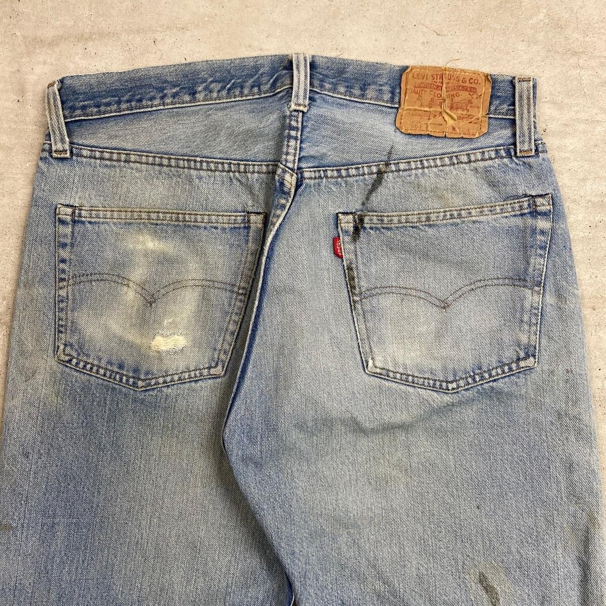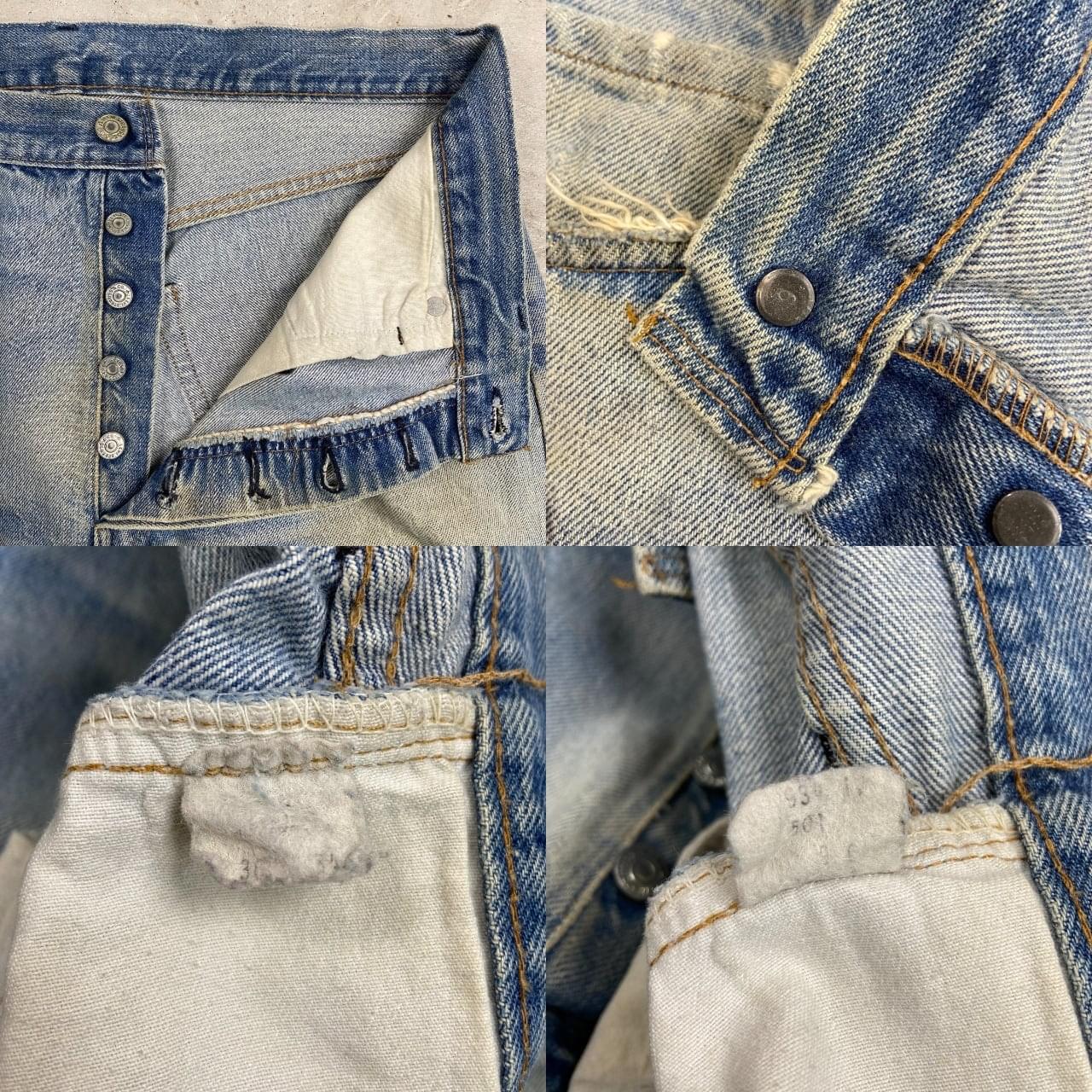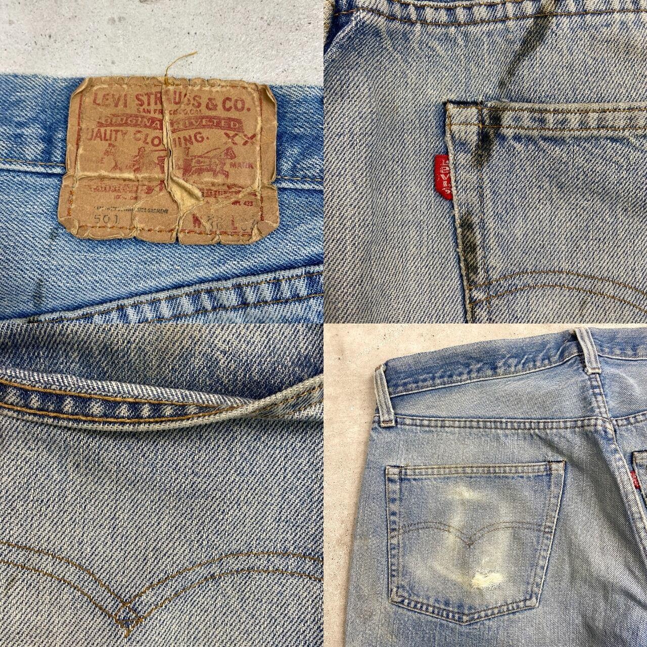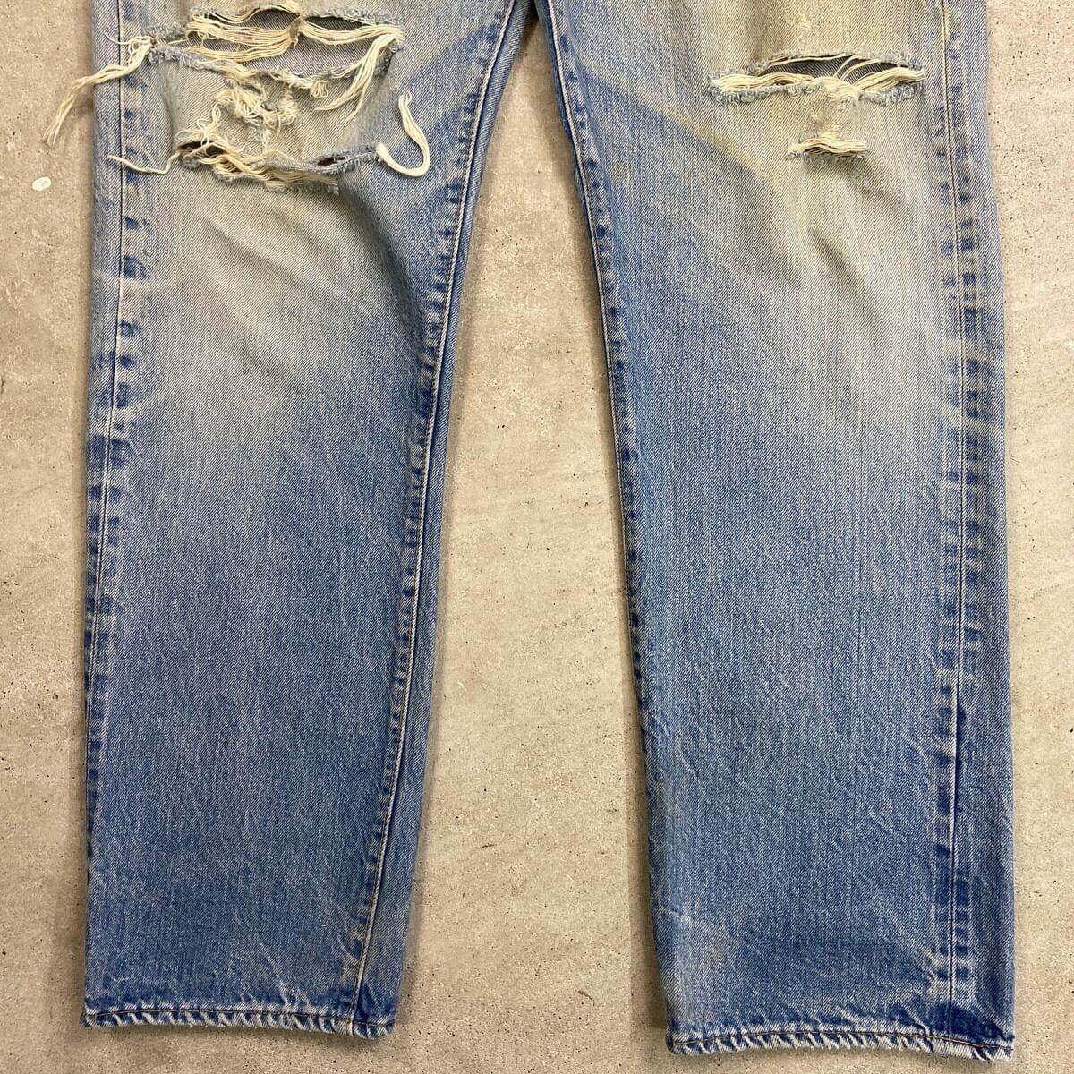 ■70年代 USA製 Levi's リーバイス 501 66後期 ストレート クラッシュデニムパンツ メンズW33相当 古着 70s ヴィンテージ VINTAGE アメカジ ジーンズ ポケット裏チェーンステッチ 黒カンヌキ アタリ ヒゲ 青色【デニムパンツ】/ブルー ◎こちらは1979年製のリーバイス501の66後期モデルになります。 【ブランド】Levi's リーバイス ・トップボタン裏刻印 6 【サイズ】表記 W36 L32(実寸約W33 L30) ウエスト(平置き計測?2)…83 ワタリ幅...33.5 股上…30.5 股下…75.5 裾幅…21 【生産国】USA製 【素材】コットン100% 【状態】全体的な色あせと膝のクラッシュがあり、 グランジスタイルを思わせるような雰囲気のある1本です。 バックサイドにもダメージや汚れがあります。 画像にてご確認ください。 【c260228126】 ※古着は洗濯、検品などのケアを行っております。(新品・デッドストックは洗濯していません。)