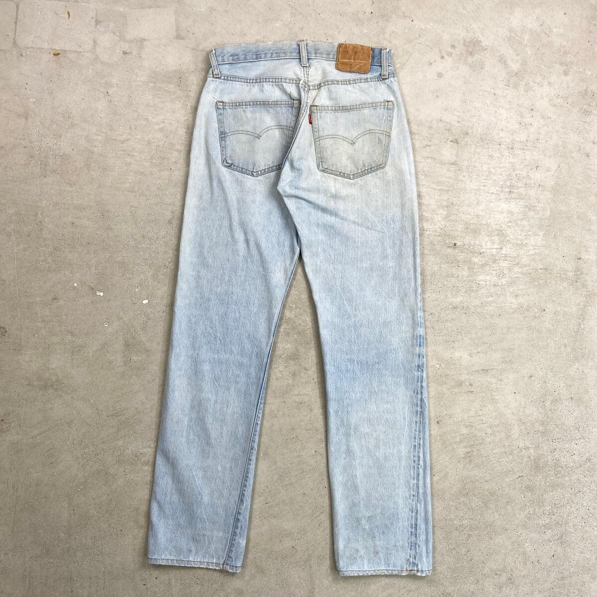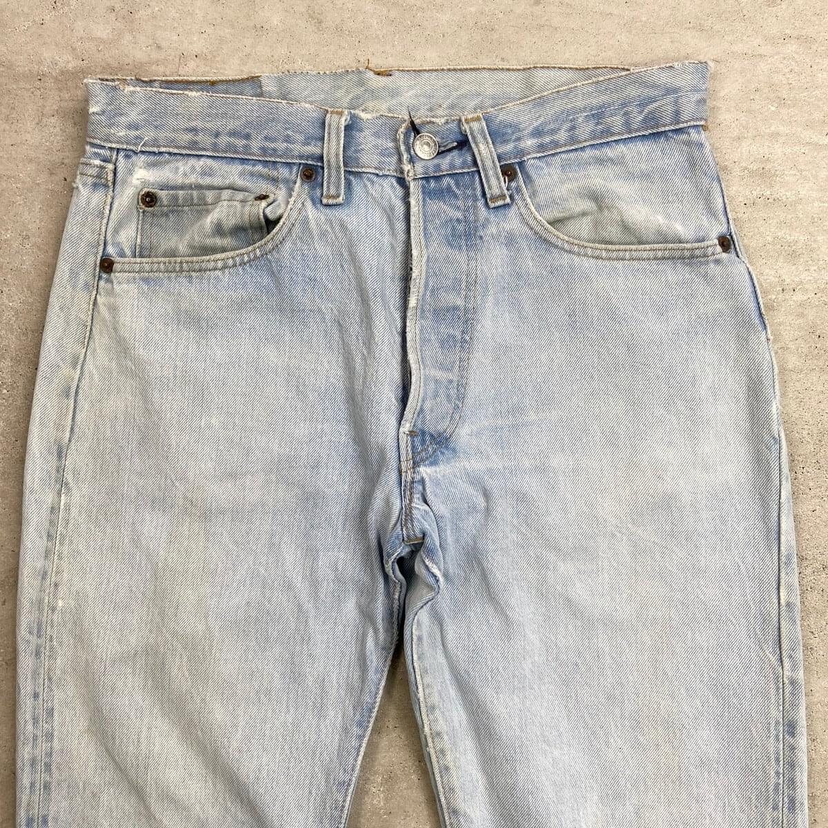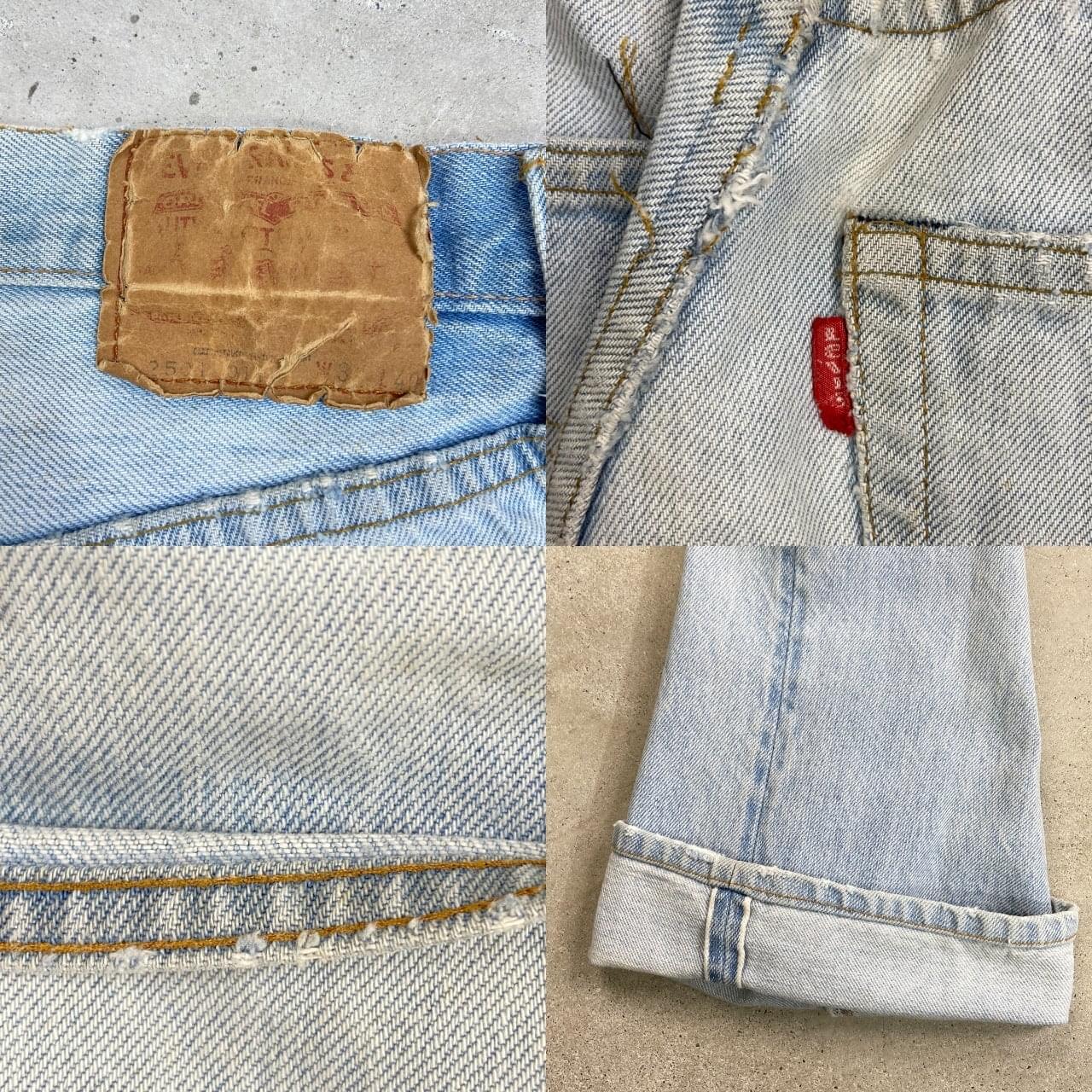 ■70年代 USA製 Levi's リーバイス 501 66後期 ストレート デニムパンツ メンズW30相当 古着 70s ヴィンテージ VINTAGE アメカジ ジーンズ ポケット裏チェーンステッチ 黒カンヌキ アイスブルー ライトインディゴ【デニムパンツ】/ライトブルー ◎こちらは1979年製のリーバイス501の66後期モデルになります。 【ブランド】Levi's リーバイス ・トップボタン裏刻印 6 【サイズ】表記 W32 L40(実寸約W30 L33) ※裾上げされております ウエスト(平置き計測?2)…77 ワタリ幅...31 股上…27.5 股下…83.5 裾幅…20.5 【生産国】USA製 【素材】コットン100% 【状態】ベルトループ、ポケット付近、裾などに擦れによる ダメージほつれがあります。 フロント腿付近、バックサイドに薄いシミ汚れがございます。 画像にてご確認ください。 【c260228124】 ※古着は洗濯、検品などのケアを行っております。(新品・デッドストックは洗濯していません。)
