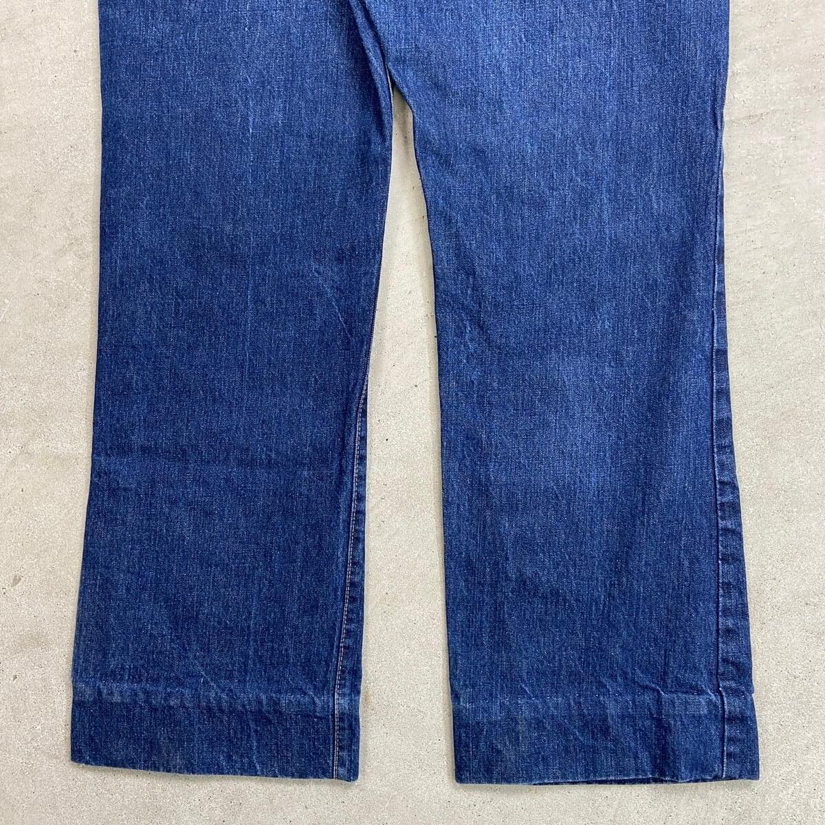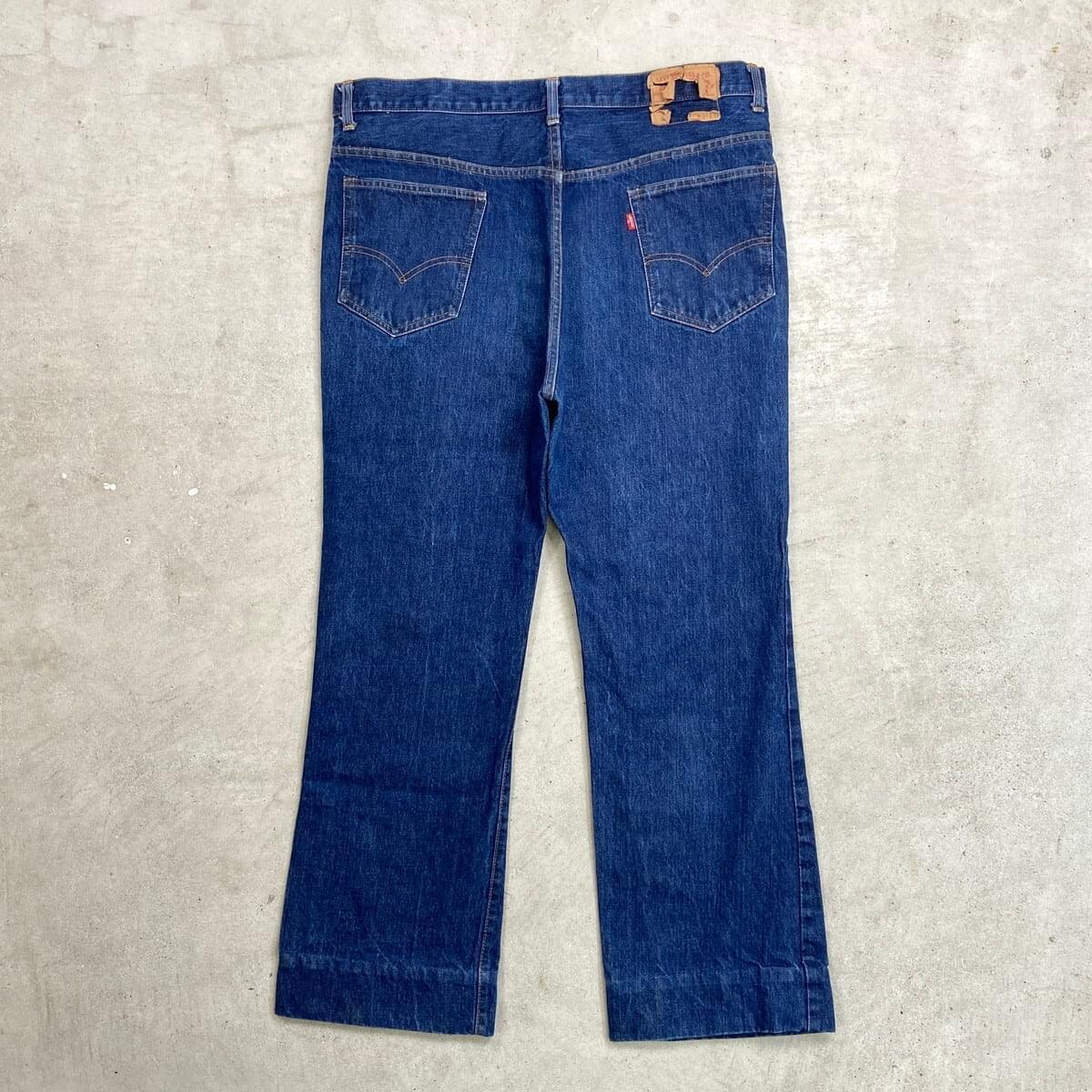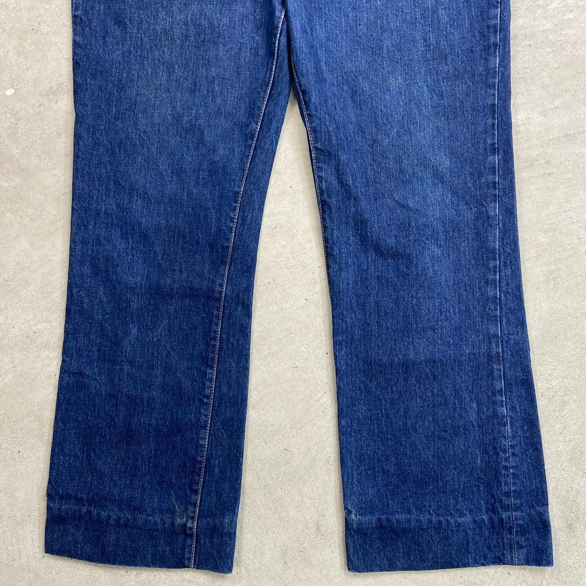 ■70年代 USA製 Levi's リーバイス 517-0217 66前期 シングル デニムパンツ フレアデニムパンツ 濃紺 メンズW40 古着 70s 黒カン 42TALON 内股シングル バックポケット裏シングルステッチ ヴィンテージ VINTAGE ブーツカット ジーンズ ビッグサイズ【デニムパンツ】/ブルー ◎こちらは、74年製の66前期モデルのフレアデニムパンツとなっております。 【ブランド】Levi's リーバイス ・トップボタン裏刻印 2 【サイズ】表記 W40 L30 裾上げされております。 ※計測値をご確認ください。 ウエスト(平置き×2)…101 ワタリ幅…35 股上…34 股下…77.5 裾幅…25.5 【生産国】USA製 【素材】コットン100% 【状態】裾上げされております。 薄いシミ汚れが数か所ございます。 使用感はあるものの、しっかり色残りがあります。 画像にてご確認ください。 【c260228118】 ※古着は洗濯、検品などのケアを行っております。(新品・デッドストックは洗濯していません。) ※モニターの発色により実物と異なる場合がございます。予めご了承ください。 ※ 海外直輸入USED品になります。
