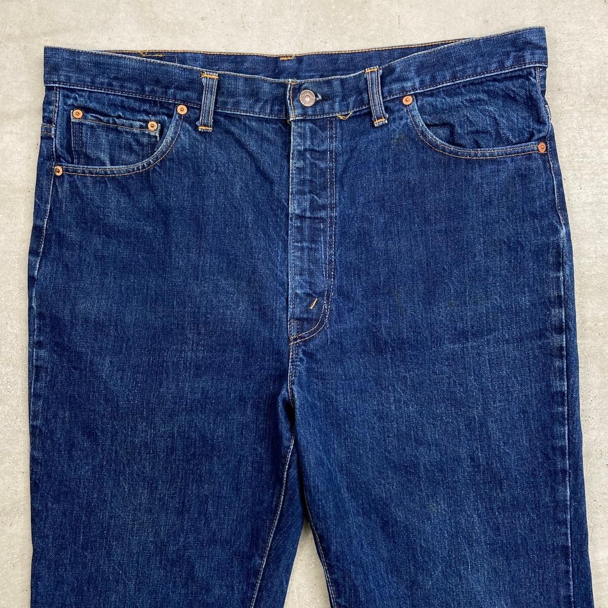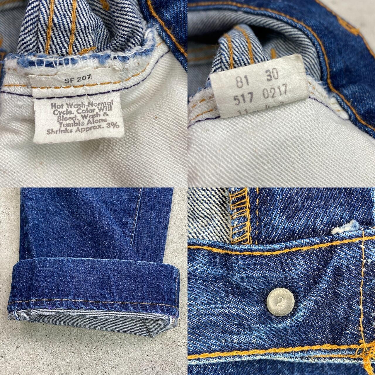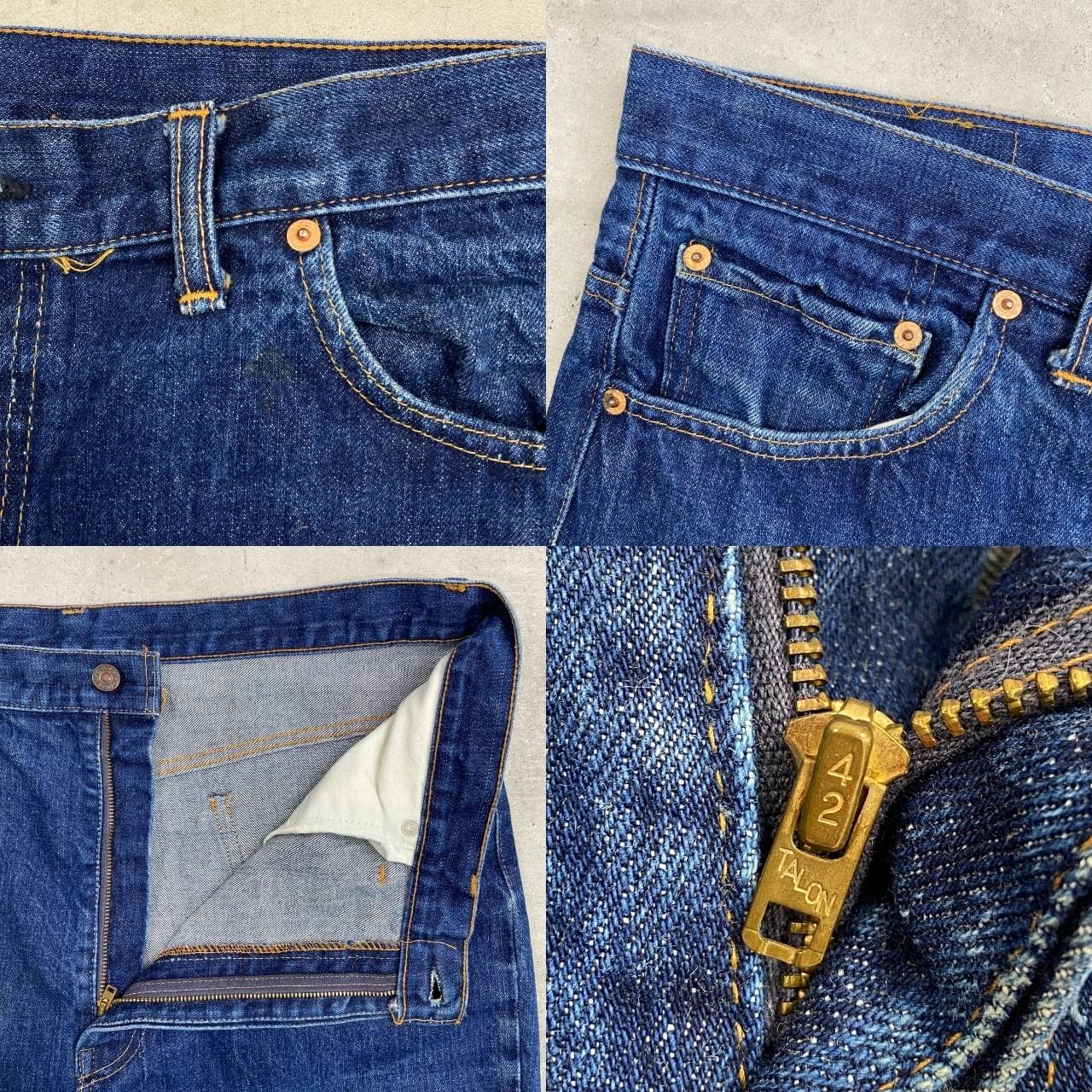 ■70年代 USA製 Levi's リーバイス 517-0217 66前期 シングル デニムパンツ フレアデニムパンツ 濃紺 メンズW40 古着 70s 黒カン 42TALON 内股シングル バックポケット裏シングルステッチ ヴィンテージ VINTAGE ブーツカット ジーンズ ビッグサイズ【デニムパンツ】/ブルー ◎こちらは、74年製の66前期モデルのフレアデニムパンツとなっております。 【ブランド】Levi's リーバイス ・トップボタン裏刻印 2 【サイズ】表記 W40 L30 裾上げされております。 ※計測値をご確認ください。 ウエスト(平置き×2)…101 ワタリ幅…35 股上…34 股下…77.5 裾幅…25.5 【生産国】USA製 【素材】コットン100% 【状態】裾上げされております。 薄いシミ汚れが数か所ございます。 使用感はあるものの、しっかり色残りがあります。 画像にてご確認ください。 【c260228118】 ※古着は洗濯、検品などのケアを行っております。(新品・デッドストックは洗濯していません。) ※モニターの発色により実物と異なる場合がございます。予めご了承ください。 ※ 海外直輸入USED品になります。