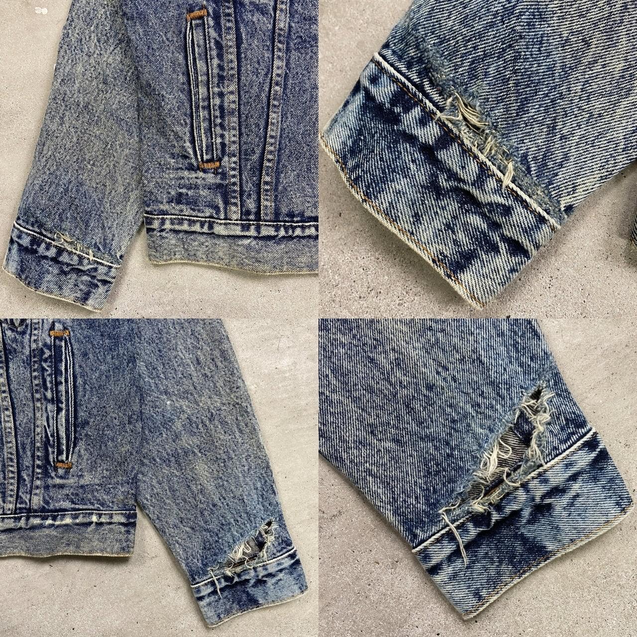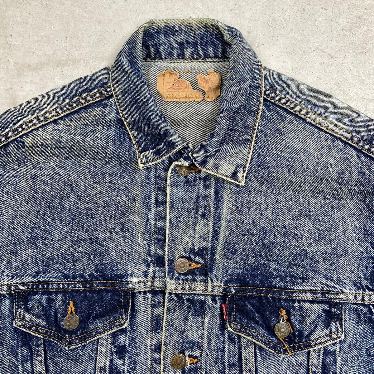 ■80年代 USA製 Levi's リーバイス 70507 0227 ケミカルウォッシュ デニムジャケット メンズM相当 古着 80s ヴィンテージ VINTAGE アメカジ トラッカージャケット 青色【デニムジャケット】/ブルー 【ブランド】Levi's リーバイス 刻印ボタン: 523 【サイズ】表記 S(実寸メンズM相当) ※計測値をご確認ください。 着丈…63 身幅…54 肩幅…53 袖丈…55 【生産国】USA製 【素材】コットン100% 【状態】全体的に使用感による色あせや擦れがございます。 左袖にダメージがあります。 画像にてご確認ください。 【c260228107】 ※古着は洗濯、検品などのケアを行っております。(新品・デッドストックは洗濯していません。) ※モニターの発色により実物と異なる場合がございます。予めご了承ください。 ※ 海外直輸入USED品になります。