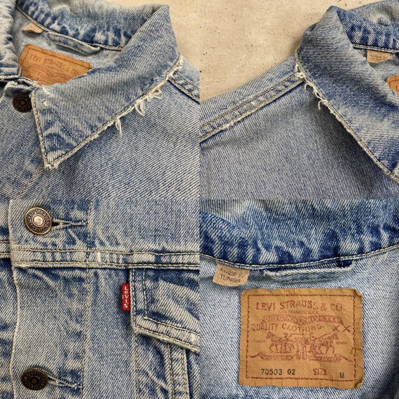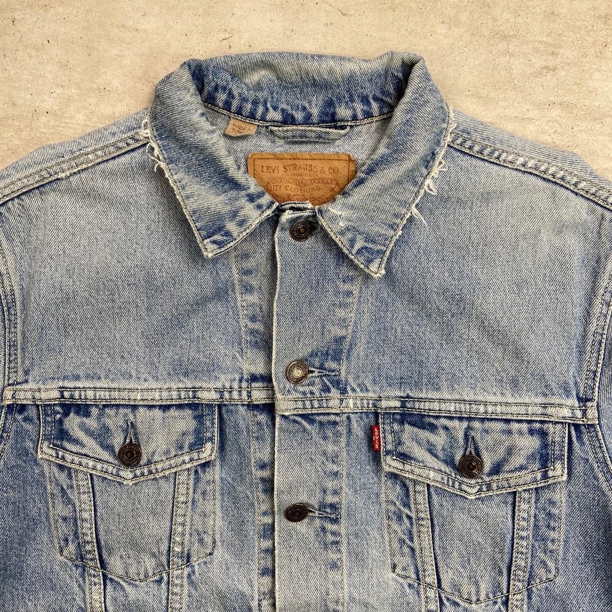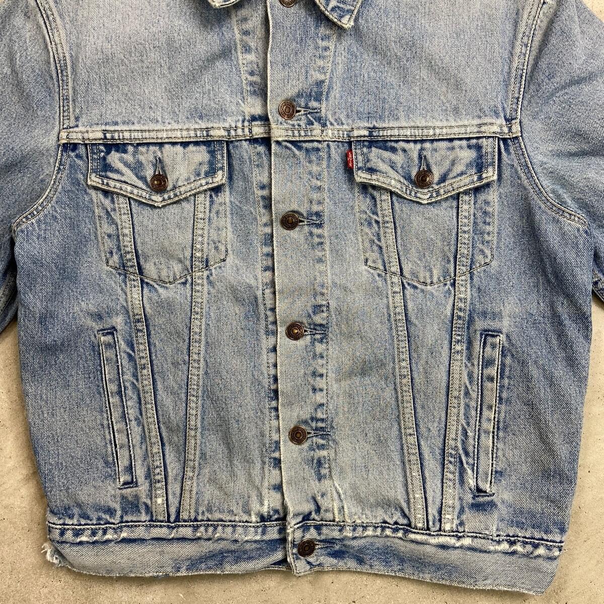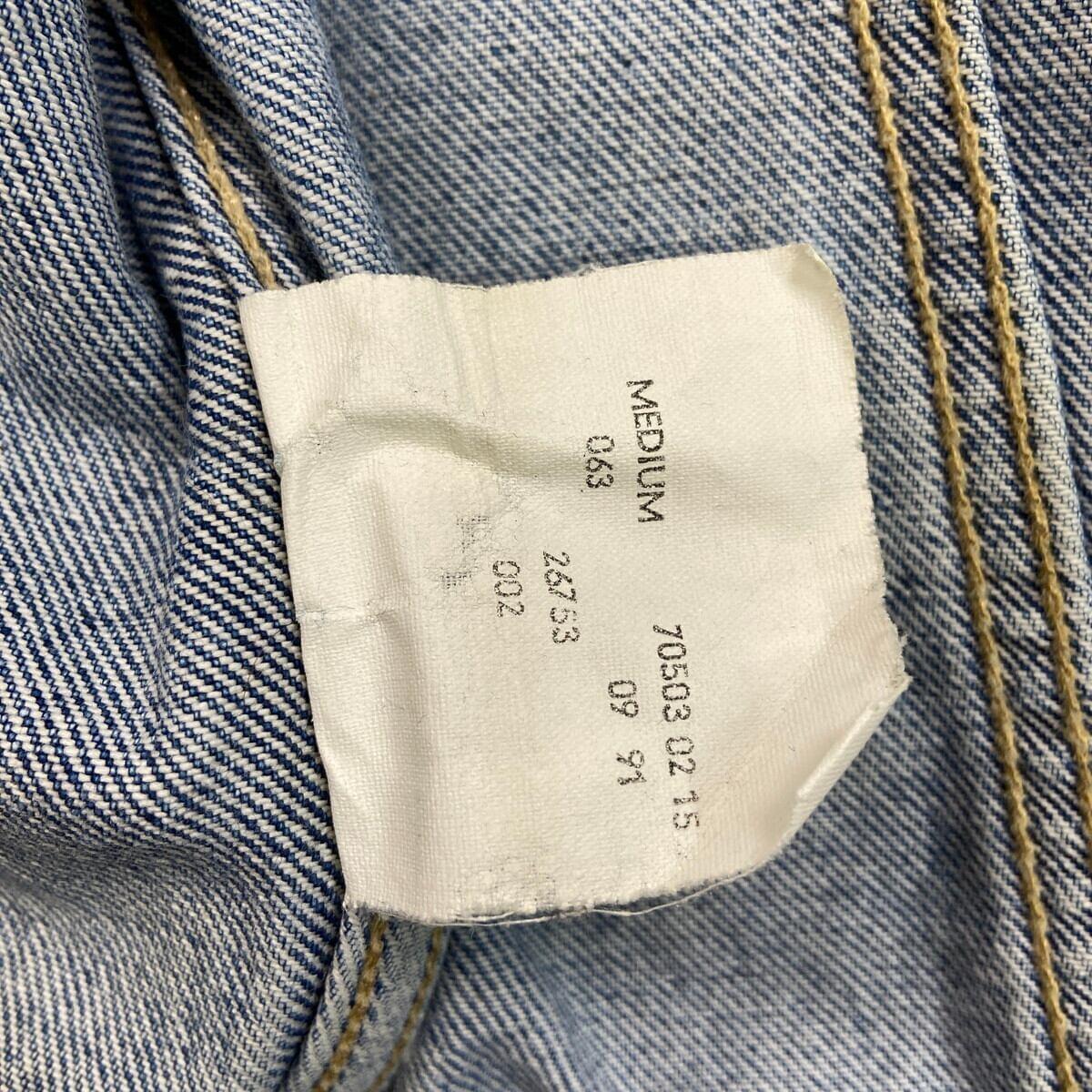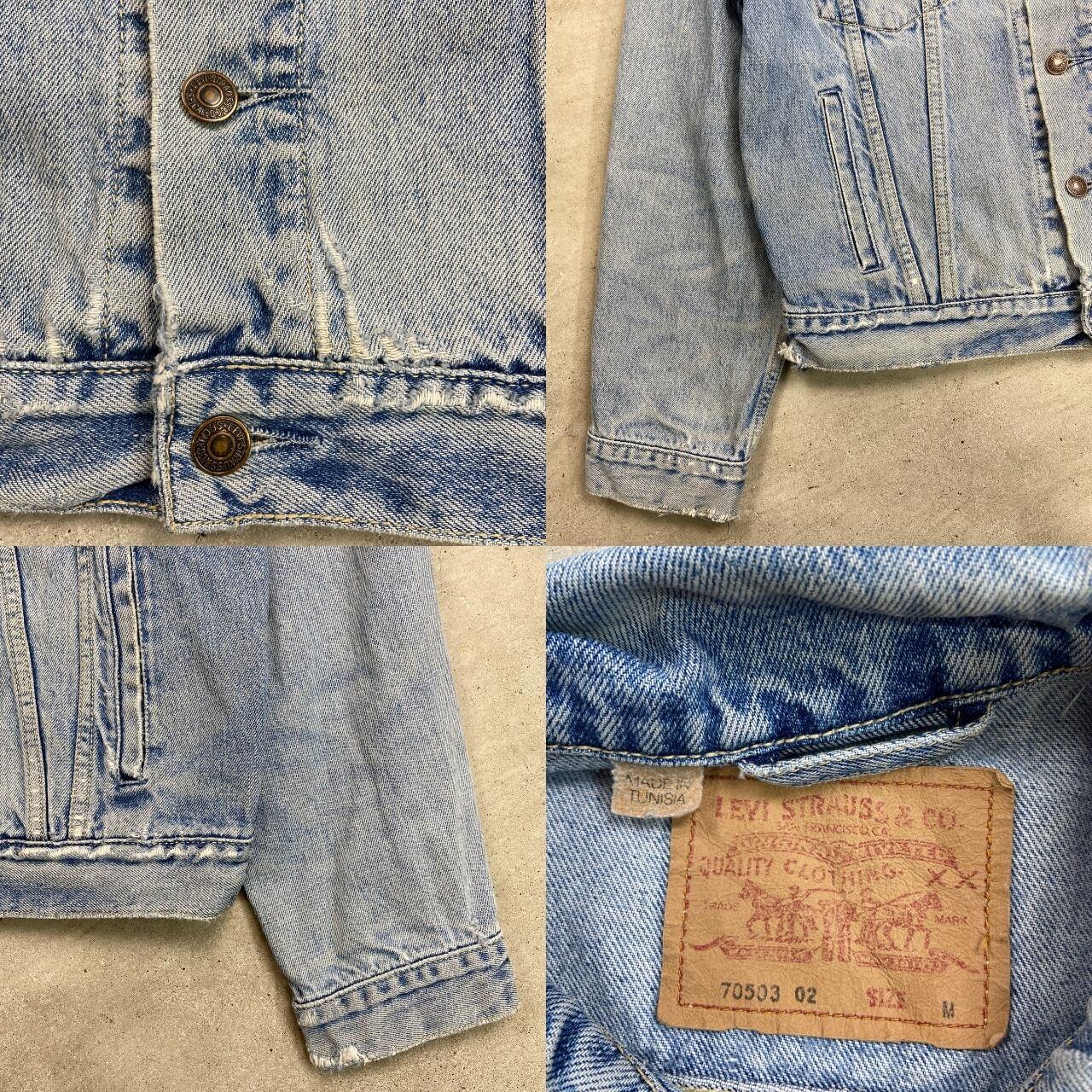 ■90年代 チュニジア製 Levi's ユーロリーバイス 70503 02 デニムジャケット メンズM 古着 90s ヴィンテージ VINTAGE アメカジ トラッカージャケット 青色【デニムジャケット】/ブルー 【ブランド】Levi's リーバイス 【サイズ】表記 M ※計測値をご確認ください。 着丈…59 身幅…56 肩幅…49.5 袖丈…63.5 【生産国】チュニジア製 【素材】コットン100% 【状態】全体的に使用感による色あせやダメージがございますが、 リアルなダメージ感が古着らしく雰囲気のある1着です。 画像にてご確認ください。 【c260228102】 ※古着は洗濯、検品などのケアを行っております。(新品・デッドストックは洗濯していません。) ※モニターの発色により実物と異なる場合がございます。予めご了承ください。 ※ 海外直輸入USED品になります。