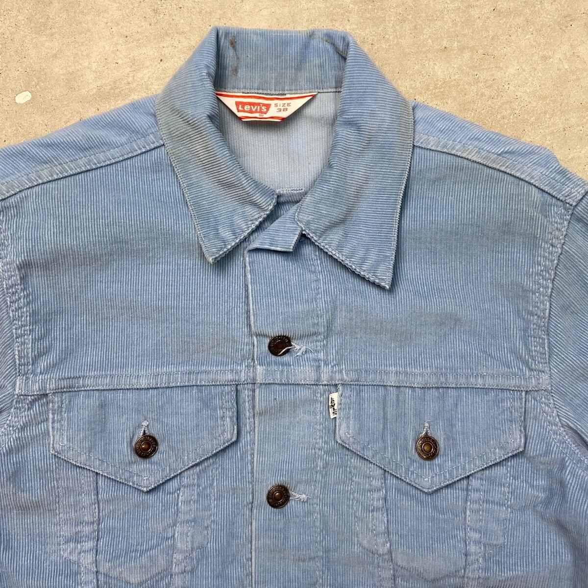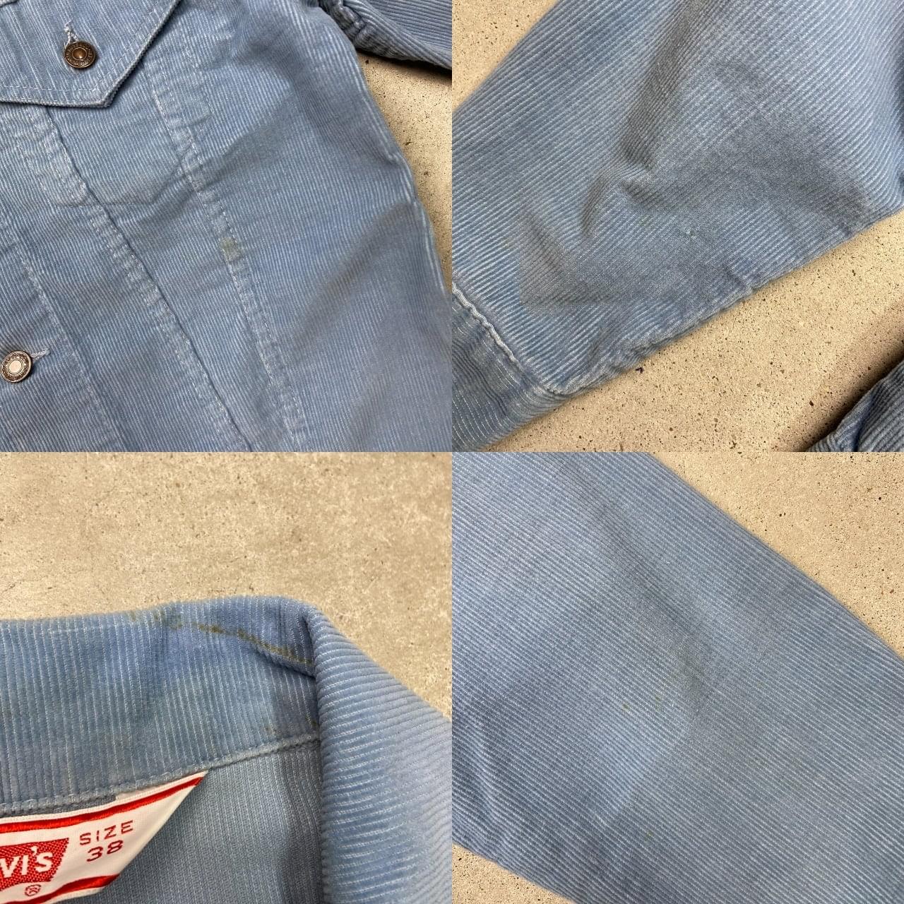 ■70年代 Levi's リーバイス 三角タグ コーデュロイ トラッカージャケット メンズS相当 古着 70s VINTAGE ヴィンテージ アメカジ 細畝 サックスブルー【コットンジャケット】/ライトブルー 【ブランド】Levi's リーバイス ボタン裏刻印:529 【サイズ】表記 38(実寸メンズS相当) ※計測値をご確認ください。 着丈…56 身幅…52 肩幅…45.5 袖丈…58.5 【生産国】不明(おそらくUSA製) 【素材】不明(おそらくコットンかと思われます) 【状態】全体的に使用感による色あせがございます。 袖やフロントに薄汚れ、バックサイドに表面劣化があります。 画像にてご確認ください。 【c260102142】 ※古着は洗濯、検品などのケアを行っております。(新品・デッドストックは洗濯していません。) ※モニターの発色により実物と異なる場合がございます。予めご了承ください。 ※ 海外直輸入USED品になります。