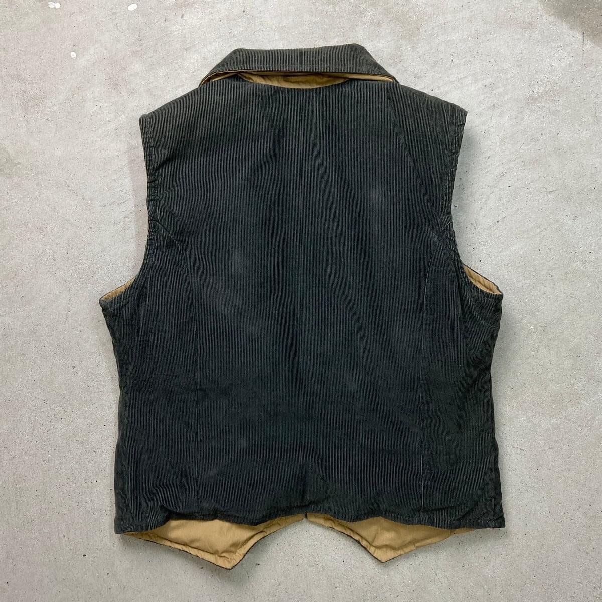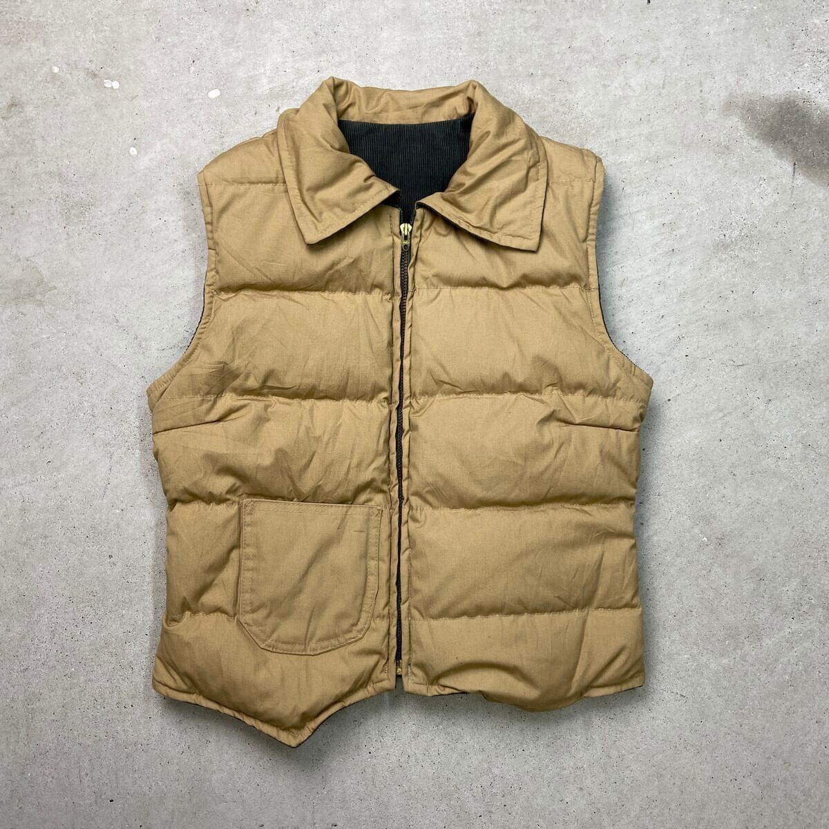 ■70~80年代 Eddie Bauer エディーバウアー リバーシブル コーデュロイダウンベスト メンズS相当 レディースS相当 古着 70s 80s ヴィンテージ VINTAGE アメカジ TALON タロンジップ ダークグリーン 深緑色【ブルゾン・ジャケット】/グリーン 【ブランド】Eddie Bauer エディーバウアー 【サイズ】表記 M(実寸メンズS相当) ※計測値をご確認ください。 着丈…51 身幅…50.5 肩幅…39 【生産国】不明 【素材】不明(おそらくコットンとポリエステルの混紡かと思われます。) 【状態】全体的に使用感による色あせがございます。 裏地に小さなシミ汚れがあります。 画像にてご確認ください。 【c260102154】 ※古着は洗濯、検品などのケアを行っております。(新品・デッドストックは洗濯していません。) ※モニターの発色により実物と異なる場合がございます。予めご了承ください。 ※ 海外直輸入USED品になります。
