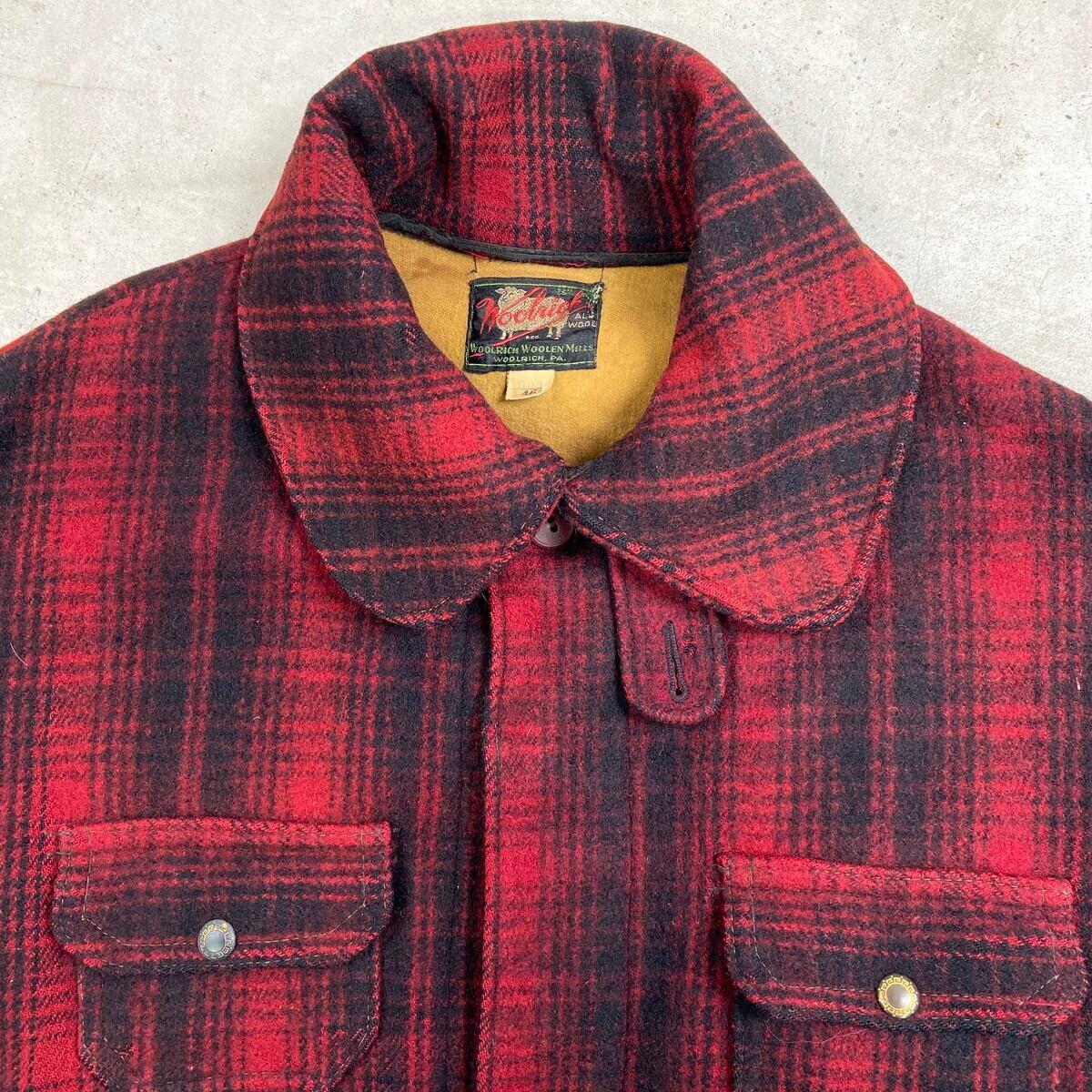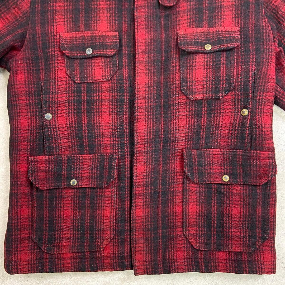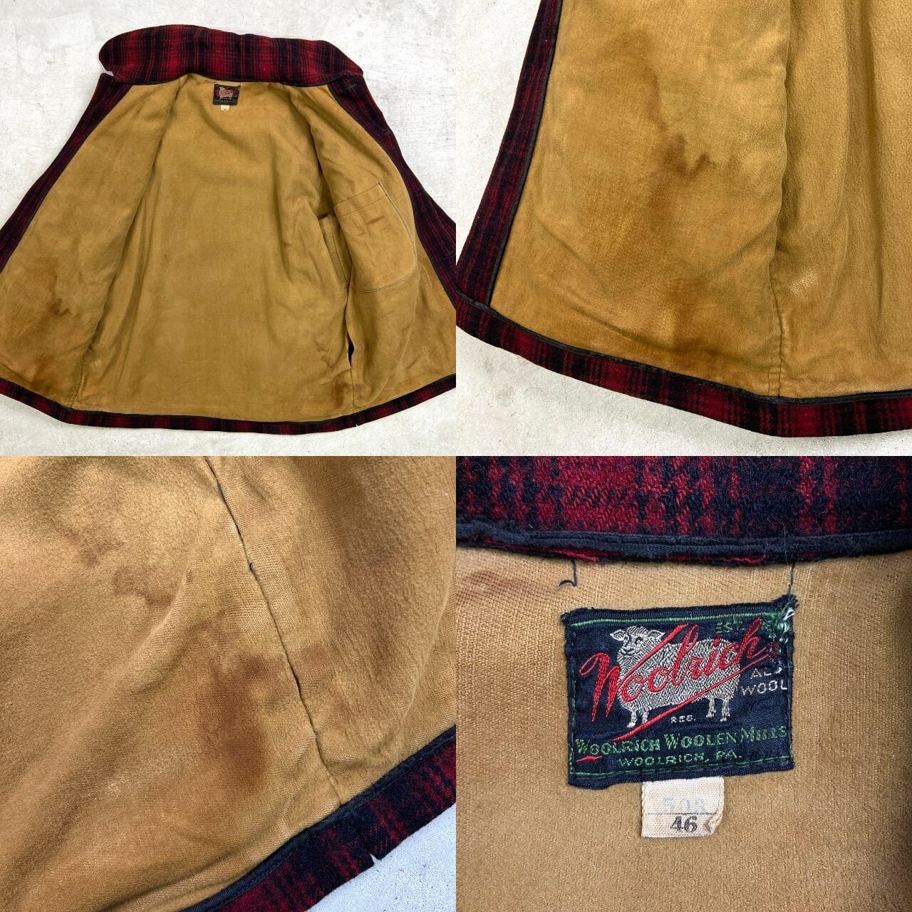 ■30年代 黒タグ WOOLRICH ウールリッチ バッファローチェック柄 ウールハンティングジャケット メンズXL相当 古着 30s VINTAGE ヴィンテージ アメカジ チンスト付き レッド×ブラック【アウトドアジャケット】/マルチカラー 【ブランド】WOOLRICH ウールリッチ 【サイズ】表記 46 (実寸メンズXL相当) ※計測値をご確認ください。 着丈…76 身幅…63 肩幅…51 袖丈…62.5 【生産国】不明 【素材】ウール100% 【状態】一部袖のボタンが欠損しております。 汚れ:特にないが、裏地に変色あり ダメージ:フロント右下ポケットに小さなダメージあり 画像にてご確認ください。 【c260207113】 ※古着は洗濯、検品などのケアを行っております。(新品・デッドストックは洗濯していません。)