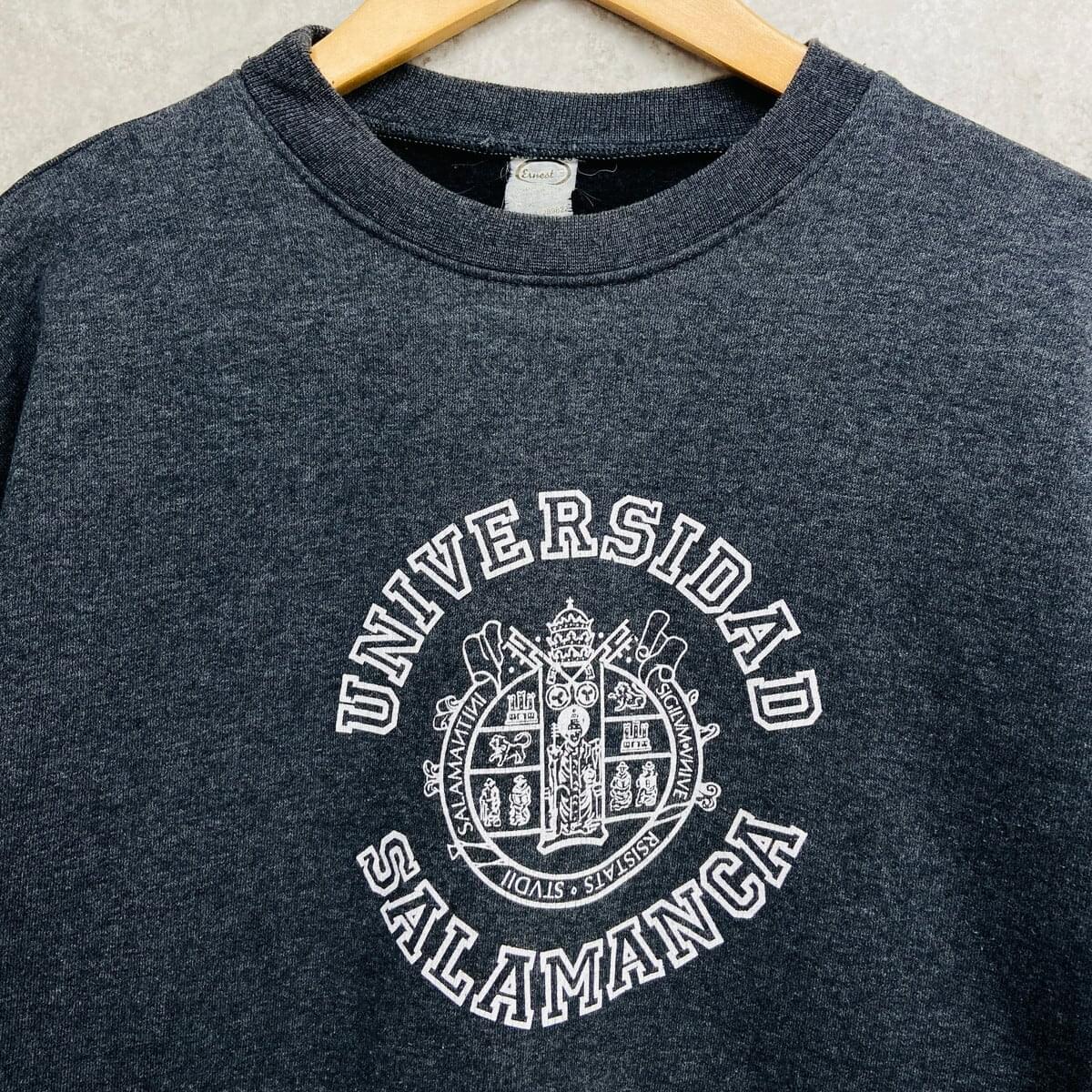 UNIVARSIDAD SALAMANCA カレッジプリント スウェットシャツ メンズL相当 古着 アメカジ サラマンカ大学 トレーナー チャコールグレー