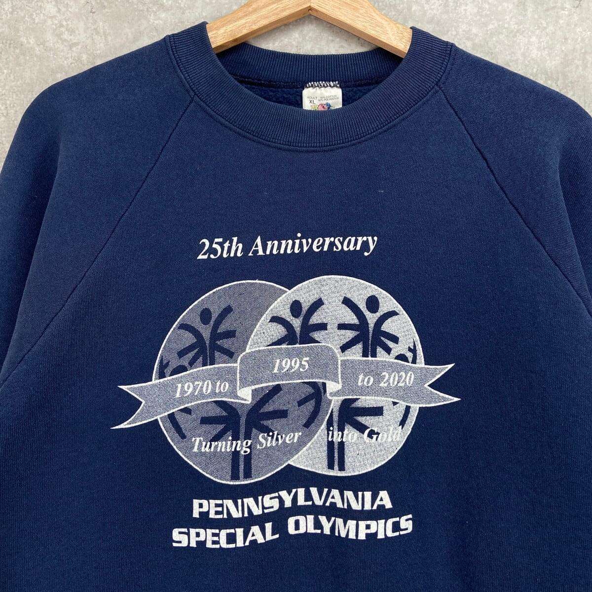 90年代 USA製 SPECIAL OLYMPICS 企業ロゴプリント メンズL相当 古着 90s VINTAGE ヴィンテージ ラグランスリーブ トレーナー 紺色