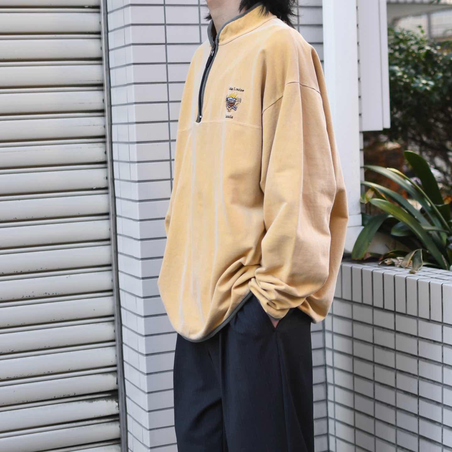 古着 ガーメントダイ フェード スーベニア スウェット ハーフジップ 刺繍