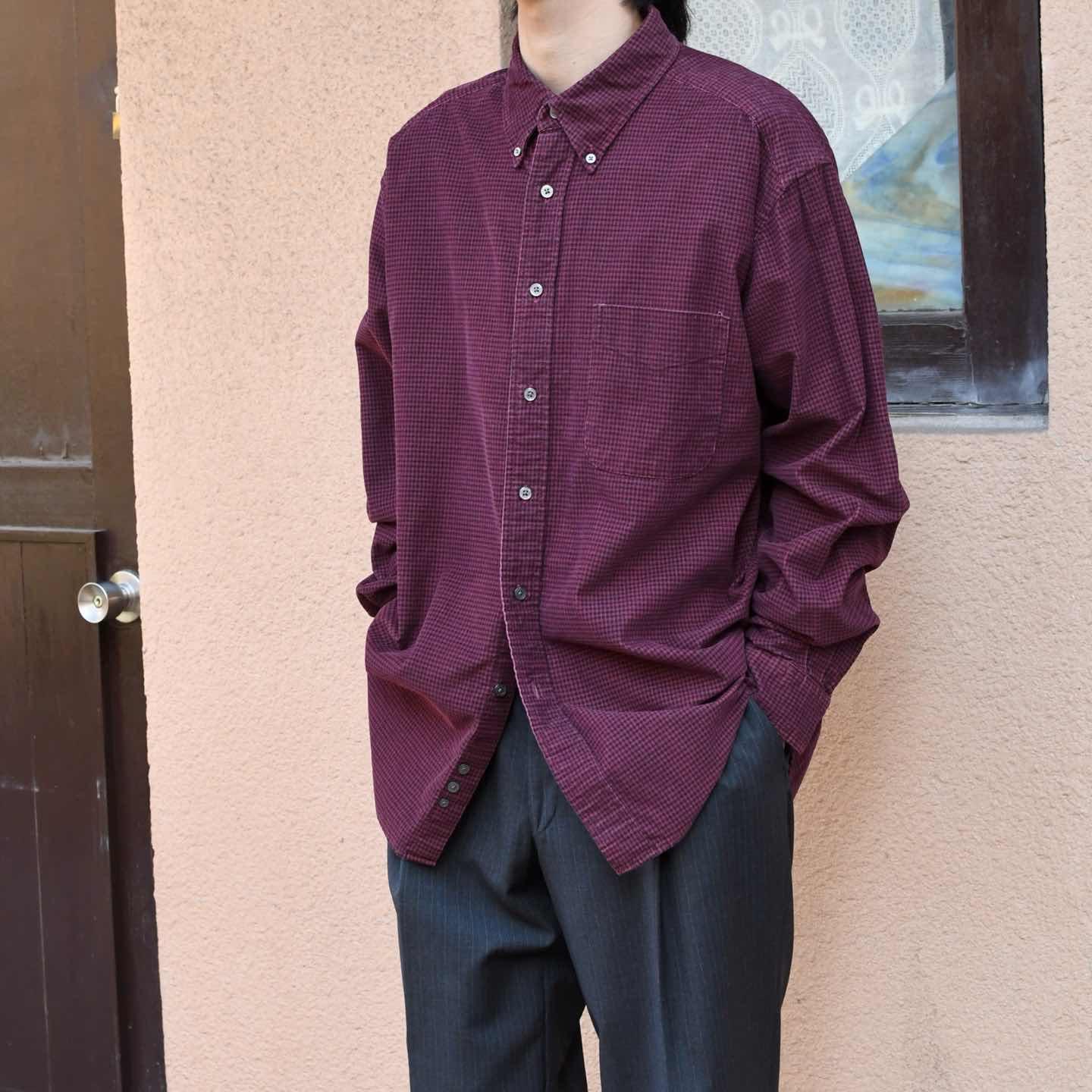 古着 Eddie Bauer 千鳥格子柄 細畝 コーデュロイシャツ バーガンディ